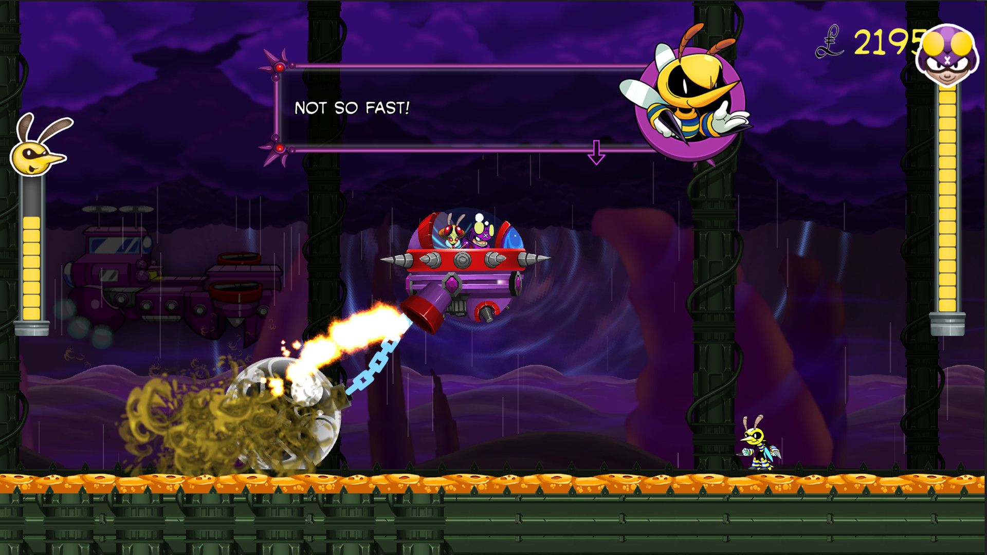 Основная привлекательность игры заключается в её уникальных «боях с боссами наоборот», где вы управляете большим транспортным средством или роботом и пытаетесь победить обычного платформенного героя. Хотя концепция интересна, она плохо реализована. Управление кажется неудобным, и трудно понять, когда вы фактически попадаете по герою. Хотя это и соответствует теме, что герой был бы сложным противником, в конечном итоге это делает игру разочаровывающей в плане игрового процесса.