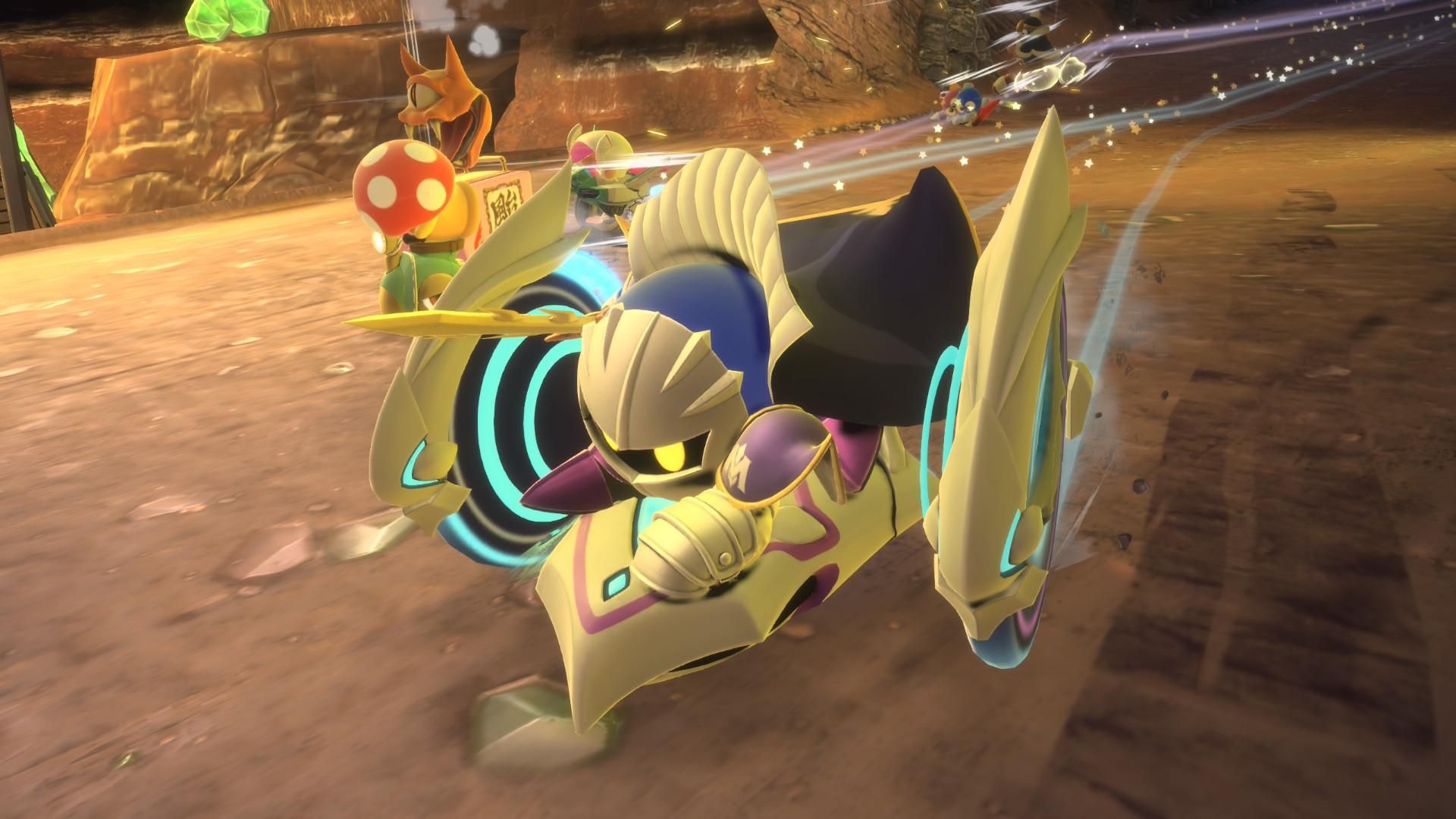 The Winged Star – это классический транспорт из Air Ride, известный своей исключительной способностью к планированию – он может парить над почти всем. Он не особенно быстрый или маневренный на земле, что может заставить вас задуматься, зачем использовать его в гонке. Однако, The Winged Star действительно сияет, когда он в воздухе. Как только он взлетает, им становится намного легче управлять и он получает значительное увеличение скорости.