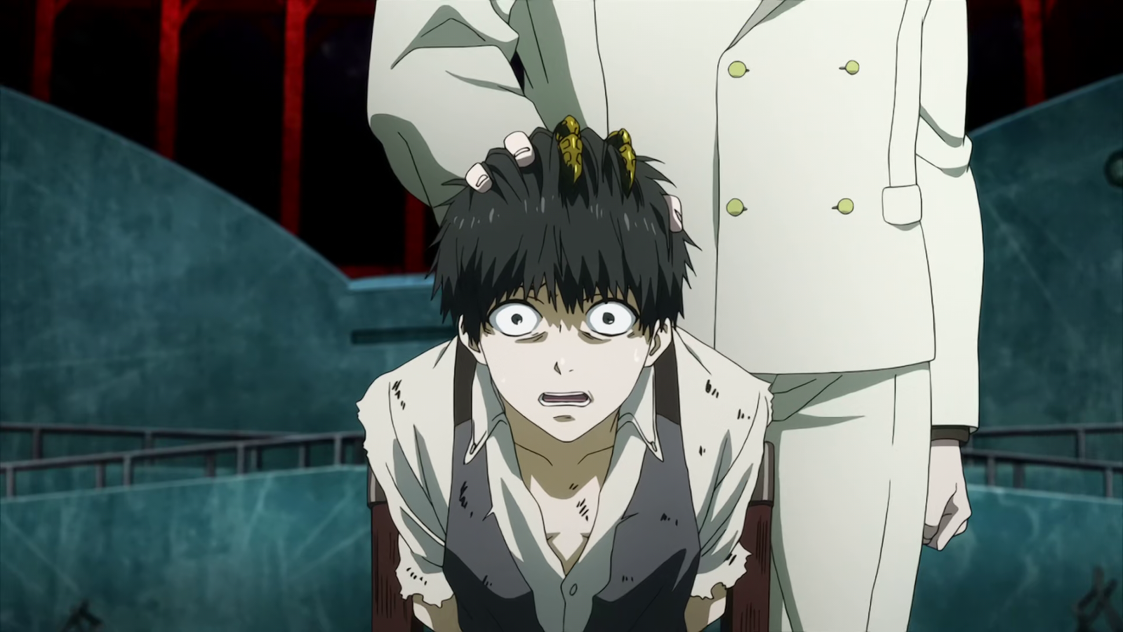 В конце первого сезона Tokyo Ghoul, после того как Канеки долгое время подвергался пыткам, он увидел того же гуля, с которым встретился в самом первом эпизоде.
