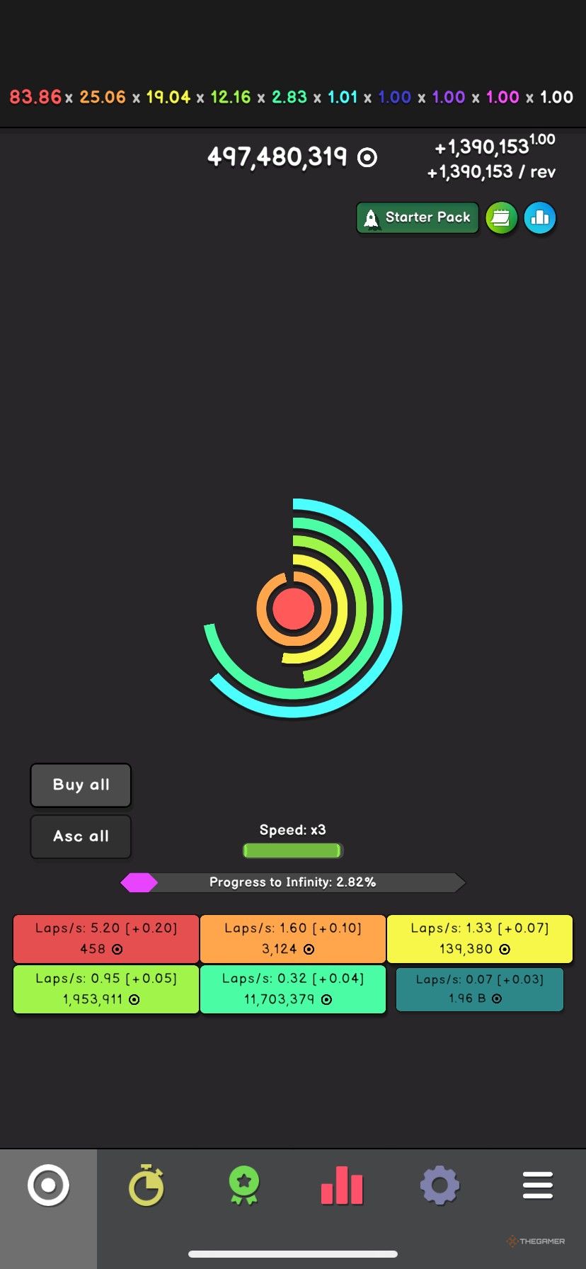 Начните с красного круга и расширяйтесь наружу через радугу. По мере продвижения новые цветные дуги будут строиться вокруг вашего центрального круга. Улучшайте скорость, с которой круги завершаются, и собирайте больше значков кругов, чтобы разблокировать дальнейшие улучшения в этой увлекательной, бесконечной idle-игре.