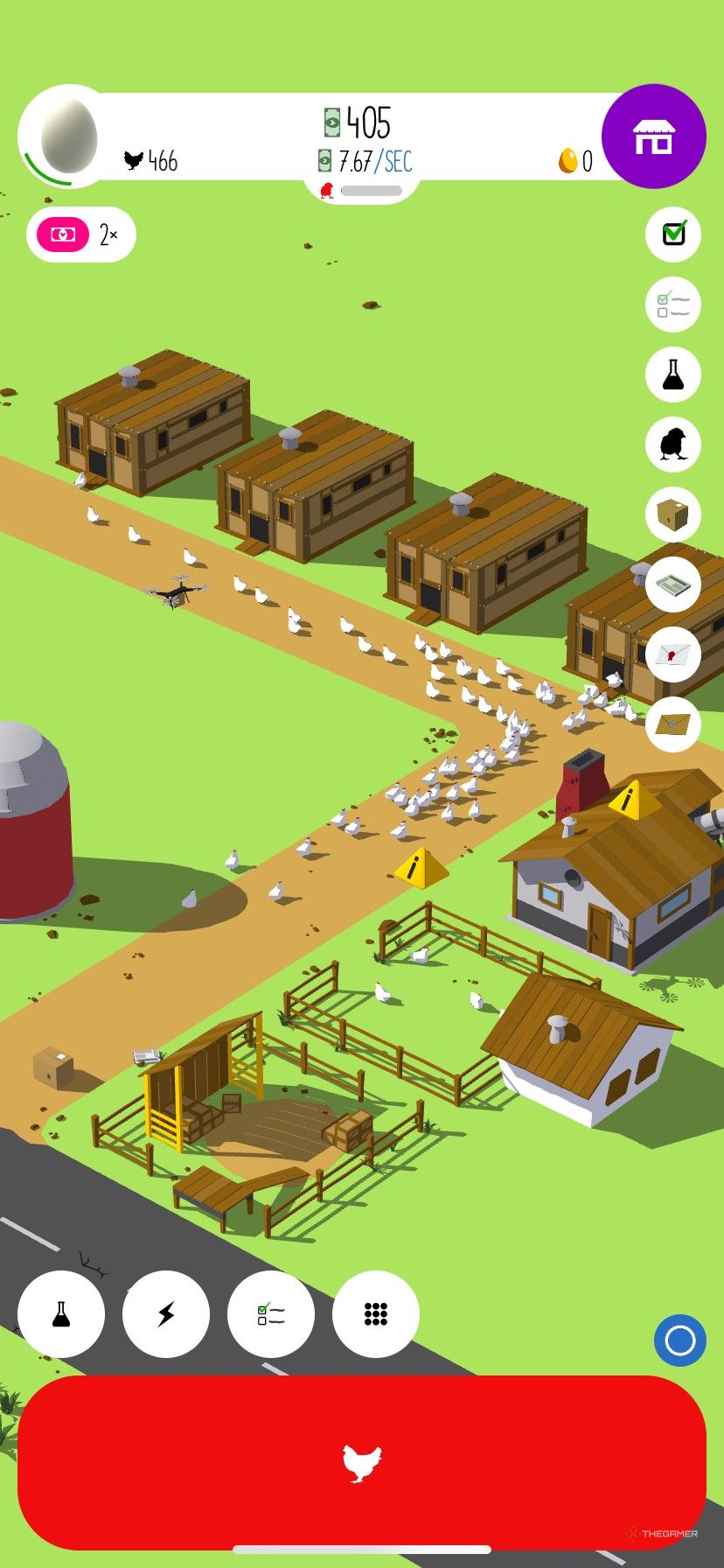 По мере прохождения вы обнаружите множество способов автоматизировать свою ферму по производству яиц и сделать её уникальной. Вы начнёте с покупки и улучшения курятников и насестов, и будете постоянно нажимать на красную кнопку, чтобы производить много цыплят – что даст вам сильный старт.