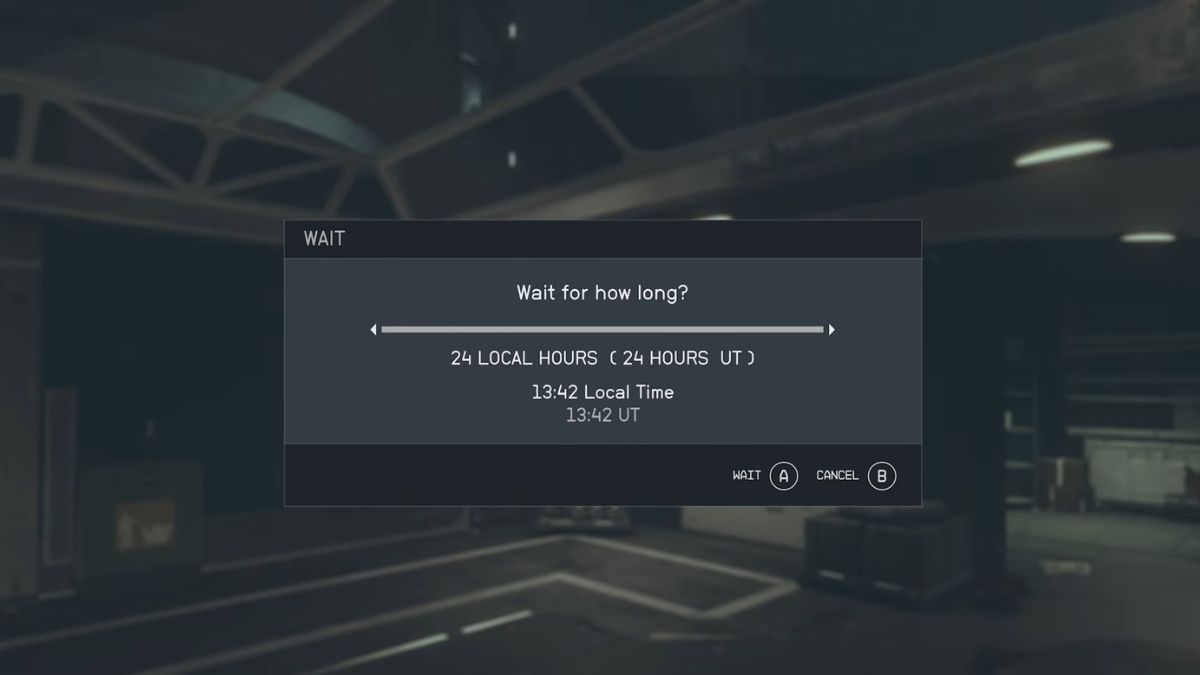 Если у ваших торговцев заканчиваются запасы, вы можете пополнить их, подождав 48 игровых часов. Самый быстрый способ сделать это — отдохнуть на стуле или поспать. Имейте в виду, что хотя игра всегда отслеживает время с помощью универсальных часов, на каждой планете свой цикл дня и ночи. Это означает, что вам часто не потребуется полных 48 местных часов, чтобы обновить запасы продавцов. Например, в New Atlantis, ожидание примерно 24 местных часов продвинет универсальное время на 50 часов.