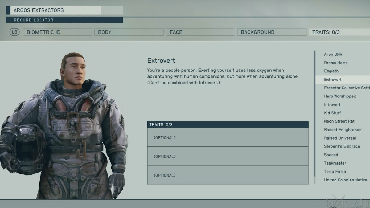 Черты — это особые качества, определяющие вашего персонажа, дающие вам как сильные стороны, так и слабости, но обычно справедливым образом. Не стесняйтесь выбирать черты, которые соответствуют вашему стилю игры, хотя Extrovert, Terra Firma и Alien DNA — хорошие варианты для начала, поскольку они предлагают полезные преимущества в начале игры.