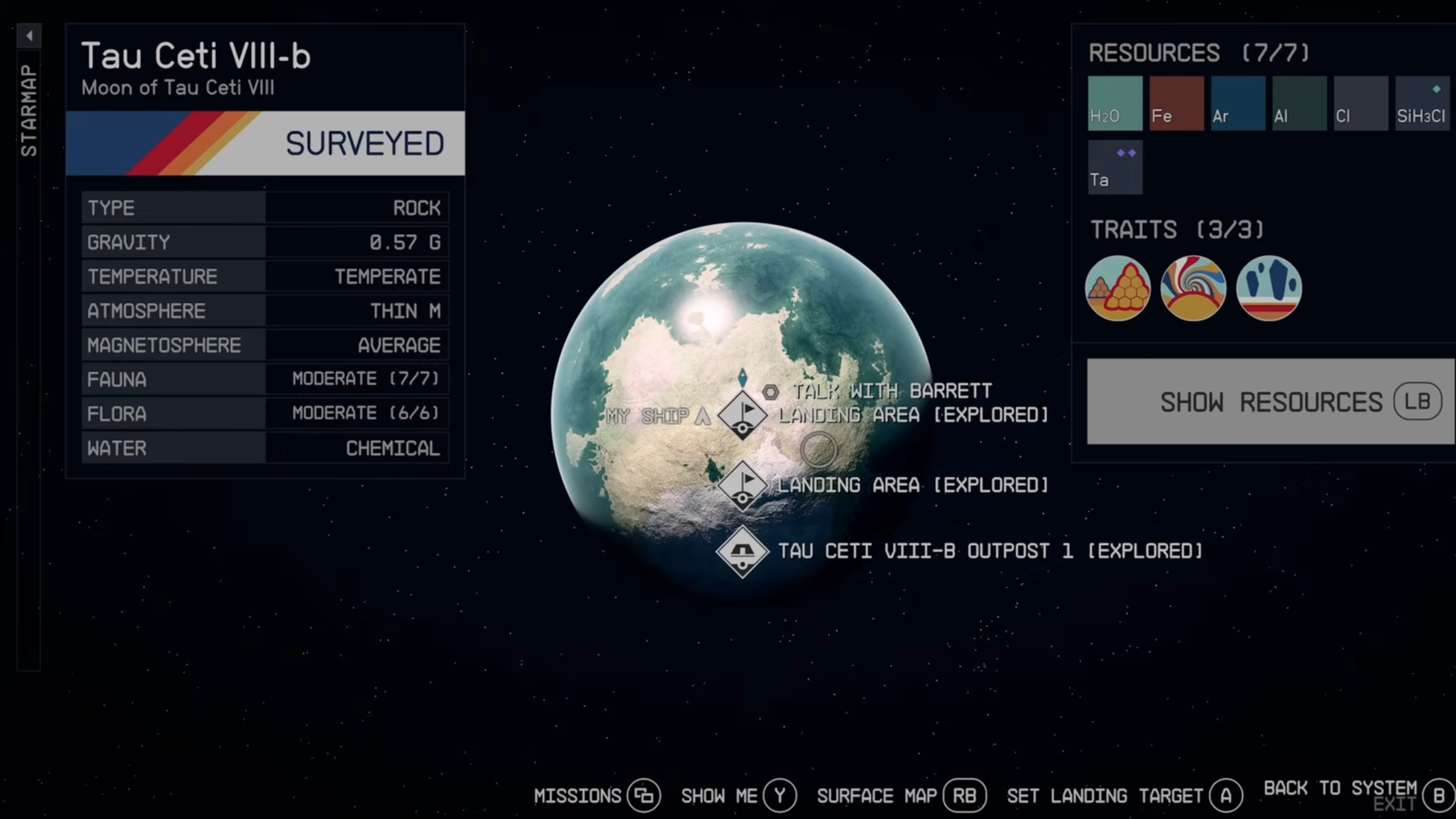 Tau Ceti VIII-b — отличный выбор для вашей Starfield Аванпоста, и не только из-за его красивых пейзажей. Этот второй спутник Tau Ceti VIII может похвастаться разнообразной растительной и животной жизнью, а также большим количеством ресурсов для добычи. Он очень похож на Землю, с разнообразием существ и захватывающими видами. Гравитация немного ниже, чем вы привыкли, но вы быстро адаптируетесь!