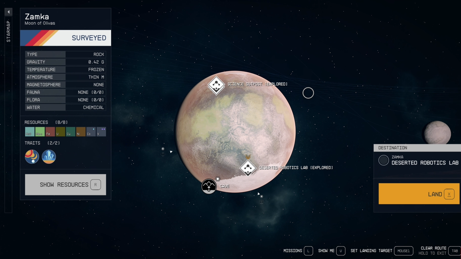 Замка — фантастическая планета для старта в Starfield, если вам нравится собирать ресурсы. Она богата Кобальтом, Медью, Ураном, Водой, Никелем, Железом и многим другим – всем, что вам понадобится для крафта и строительства в начале игры. Однако Замка не идеальна для мирного аванпоста из-за своей направленности на добычу ресурсов. Она лучше всего подходит для игроков, которые отдают приоритет обильным материалам.