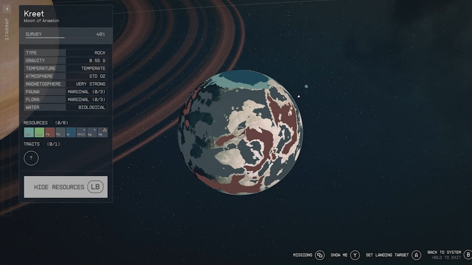 Планета является домом для уникальных растений и существ, таких как Dust Root, Nebula Vine, Kreet Stalker и Kreet Grazer. Хотя на ней не обитают люди, луна предлагает множество ресурсов и пригодный для дыхания воздух, поэтому вы можете исследовать три ее различных окружения без скафандра. Для игроков, начинающих в Starfield, Kreet — отличный выбор для основания раннего аванпоста.