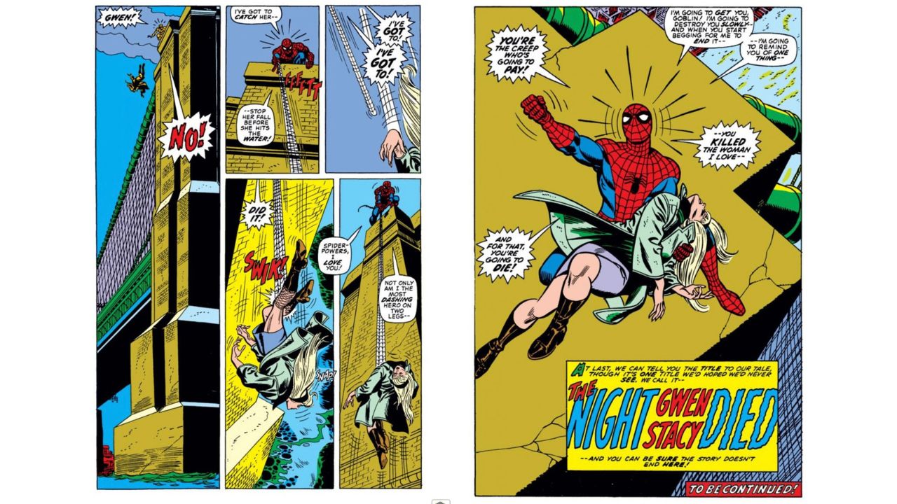 Он также известен тем, что создал одну из самых запоминающихся историй в истории супергероев, опубликованную в выпусках №121-122. Называется The Night Gwen Stacy Died, и она показывает Человека-паука, столкнувшегося с самым большим разбитым сердцем: смертью его девушки, Гвен Стейси. История изображает Питера Паркера в его самой низкой точке, борющегося с желанием нарушить свой моральный кодекс и отомстить.