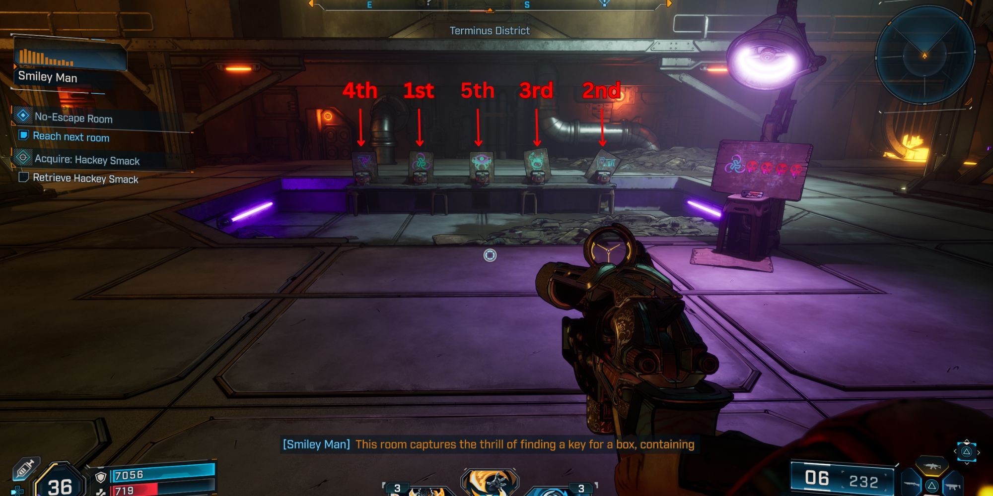 Как отметил Человек с Улыбкой, вторая головоломка включает в себя азарт поиска ключа, чтобы открыть ящик. Однако, в отличие от предыдущей, этот ящик не содержит редный мод класса. Вместо этого, он просто позволяет вам покинуть комнату головоломки.