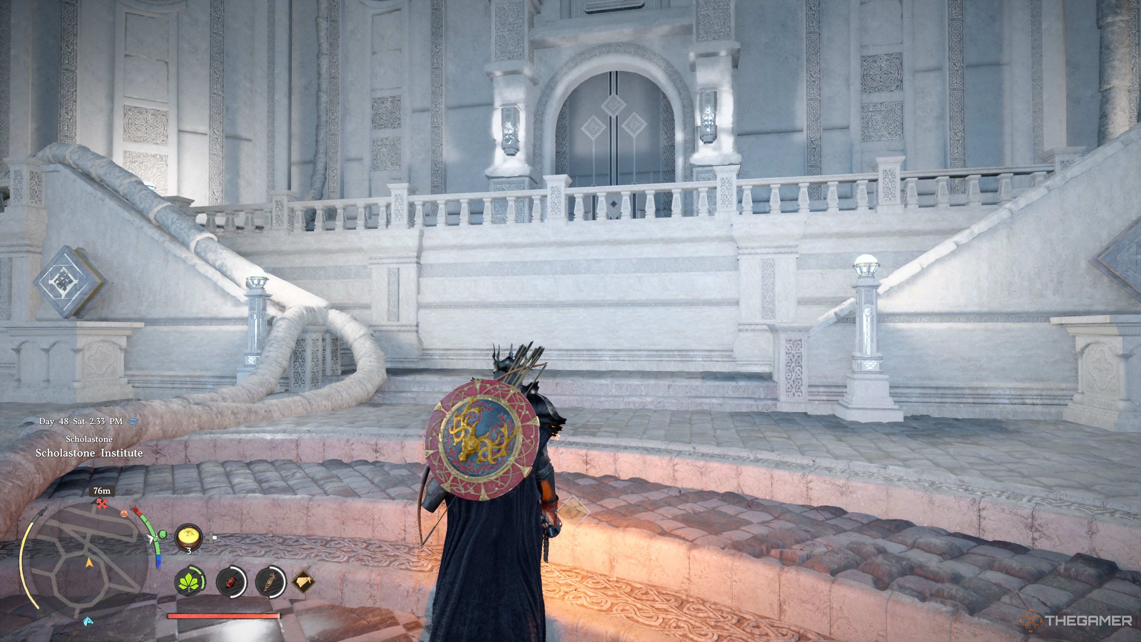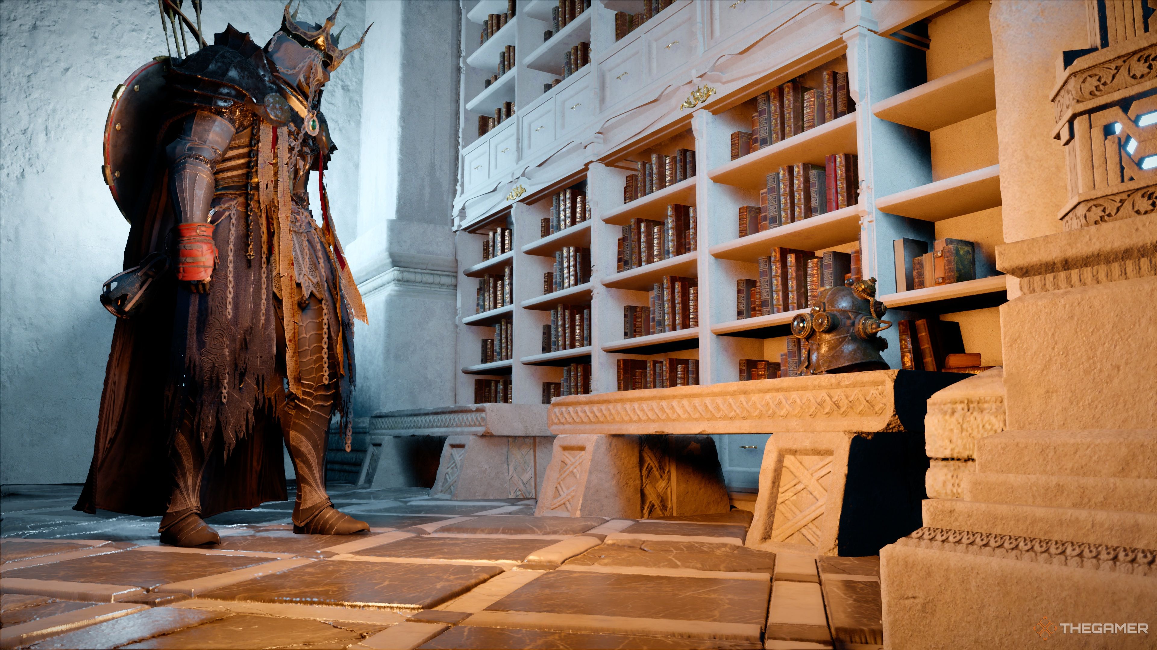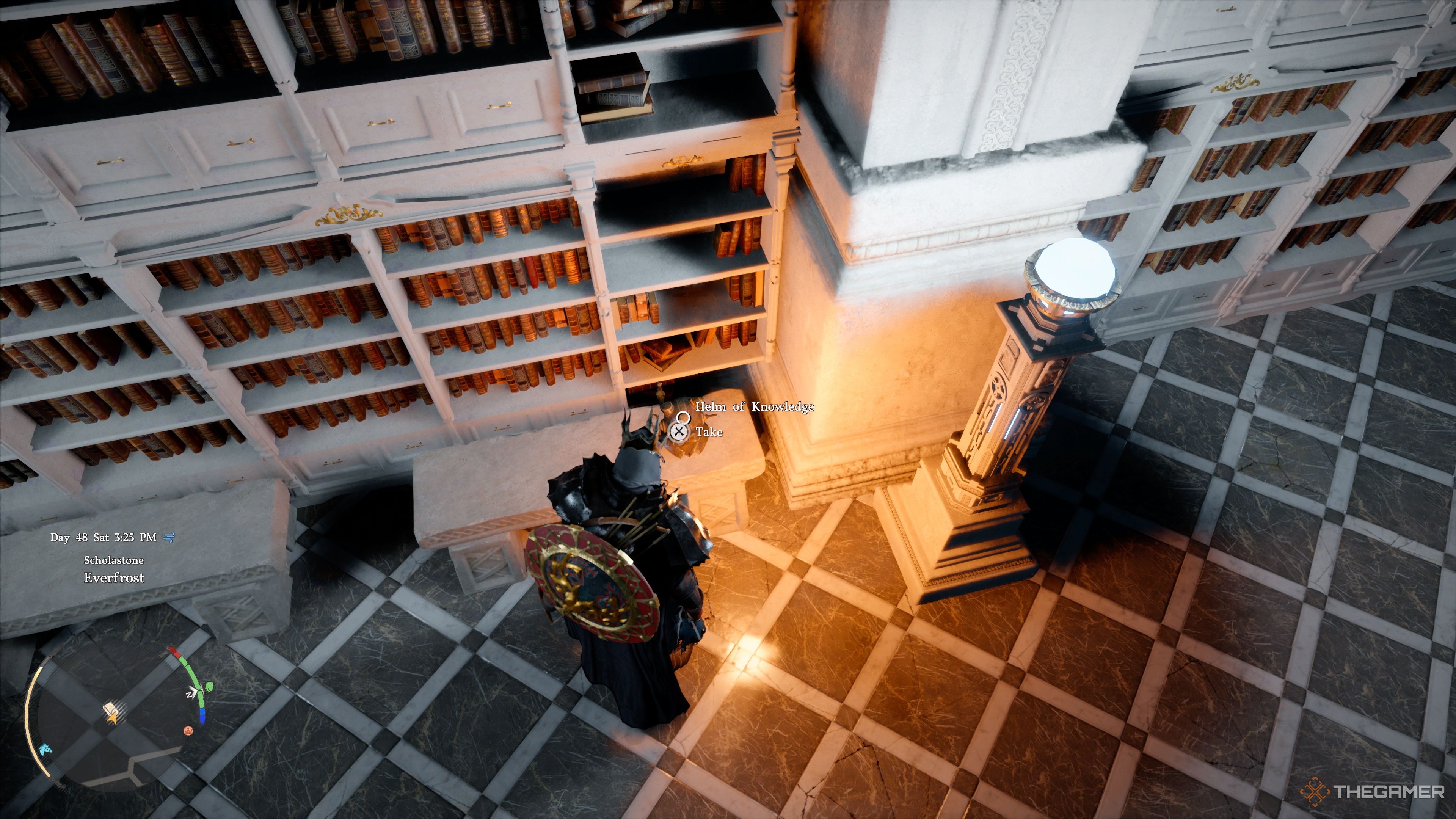 Вы можете найти Шлем Знаний на втором этаже библиотеки Института Школастов, расположенной на самой северной стороне.