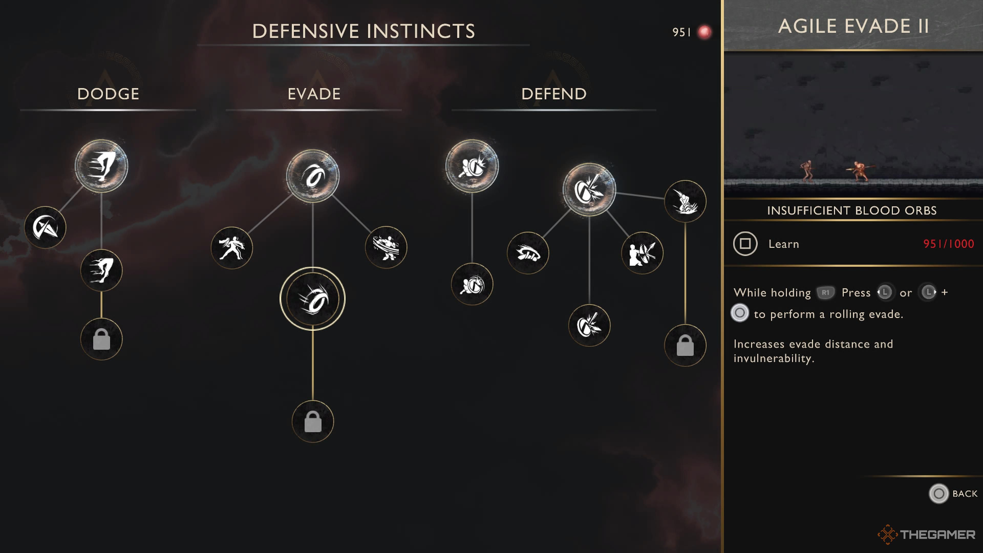 Мы рекомендуем сначала открыть Уклонение II. Эта способность значительно увеличивает дистанцию вашего кувырка, позволяя вам легко уклоняться от врагов, обходить их, чтобы атаковать сзади, и в целом быть более эффективным как в наступлении, так и в обороне. Это действительно сильная способность.