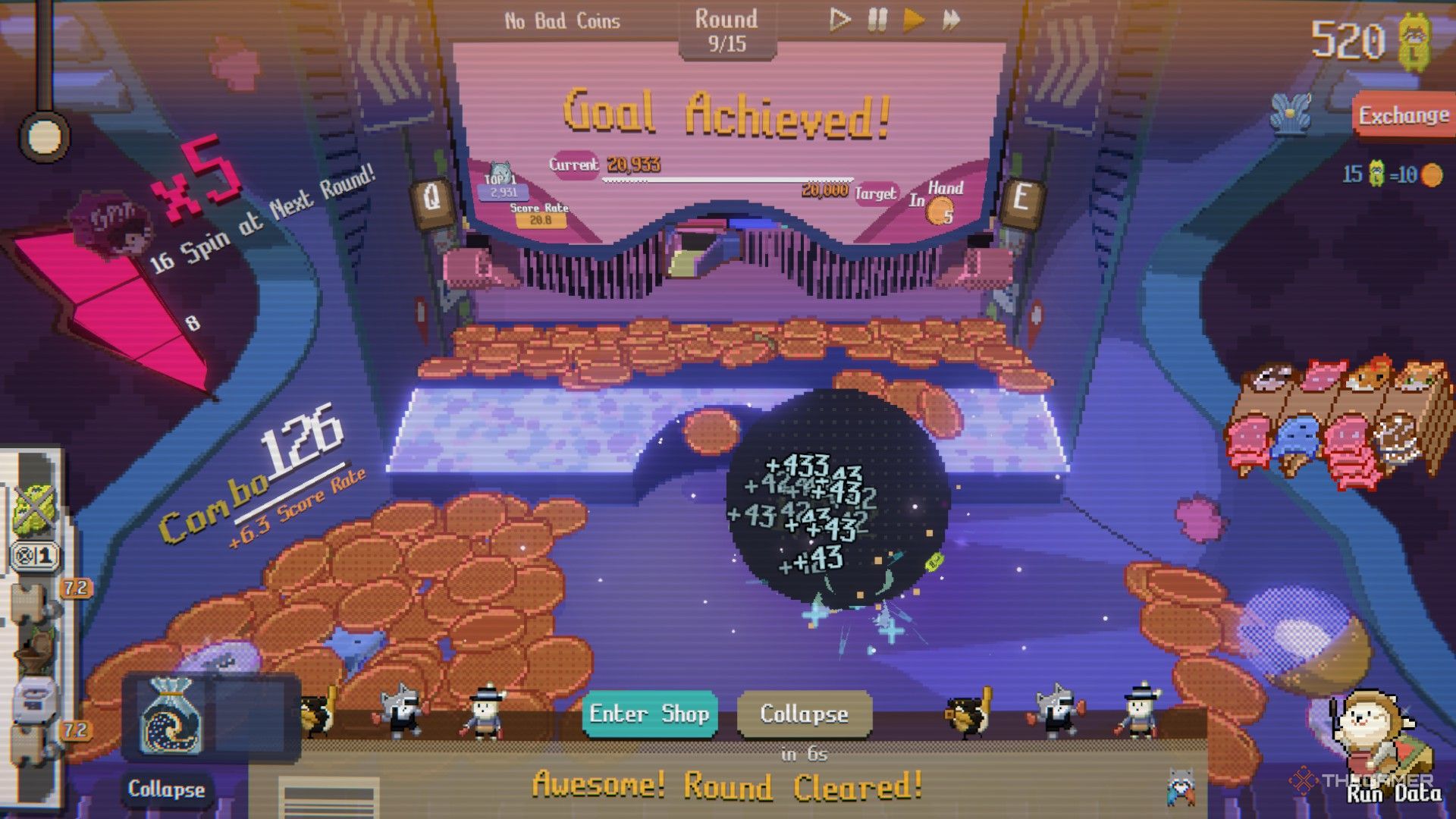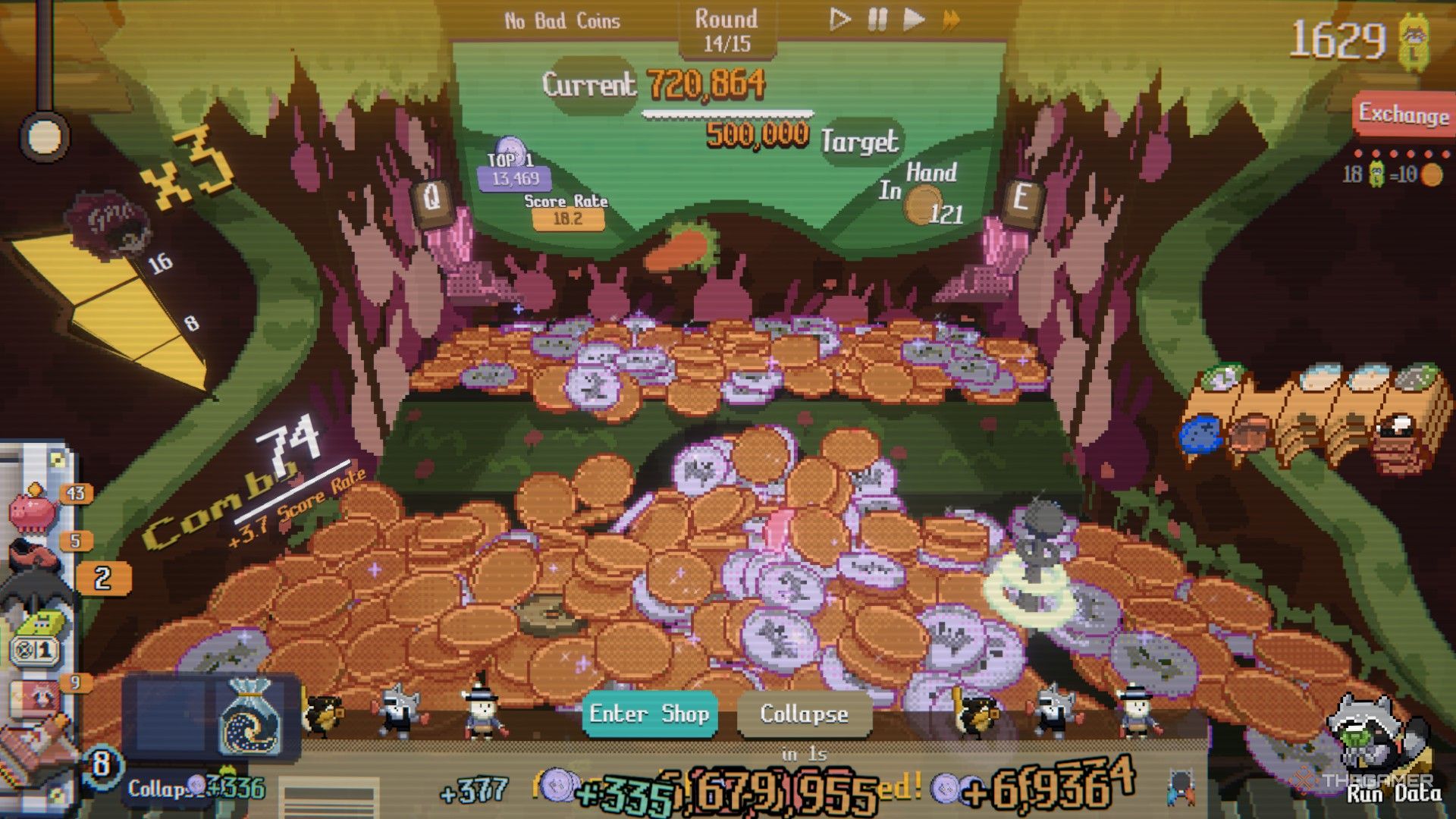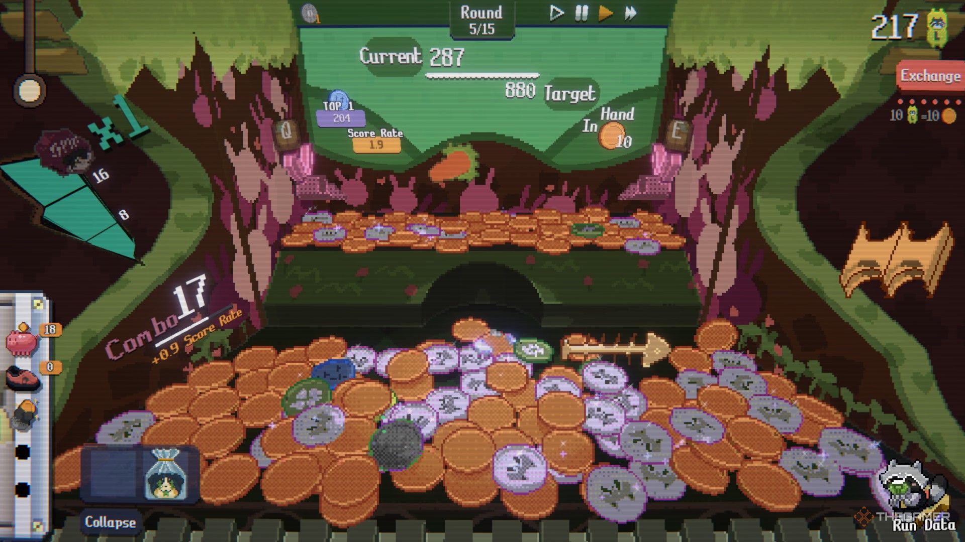 В Raccoin раунд должен заканчиваться, когда вы достигаете целевого счета. Но игра не дает понять, что вы можете выбрать, когда начать следующий раунд – автомат для монет продолжает работать и перемещать монеты, даже после достижения счета, позволяя вам отложить начало нового раунда.