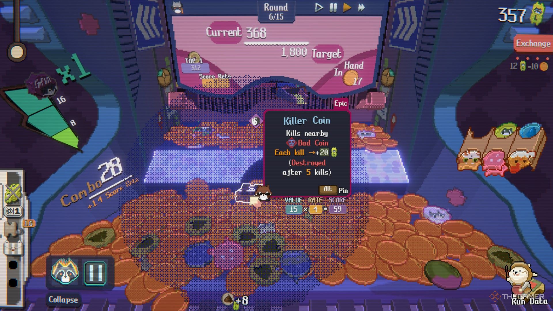 Вы найдёте множество монет в Raccoin, и большинство из них делают что-то особенное – они либо увеличивают собственную ценность, либо помогают другим монетам. Хотя соблазнительно собирать самые ценные монеты, мы настоятельно рекомендуем сосредоточиться на вашем Score Rate вместо этого. Это лучшая стратегия для большинства игроков и ситуаций.