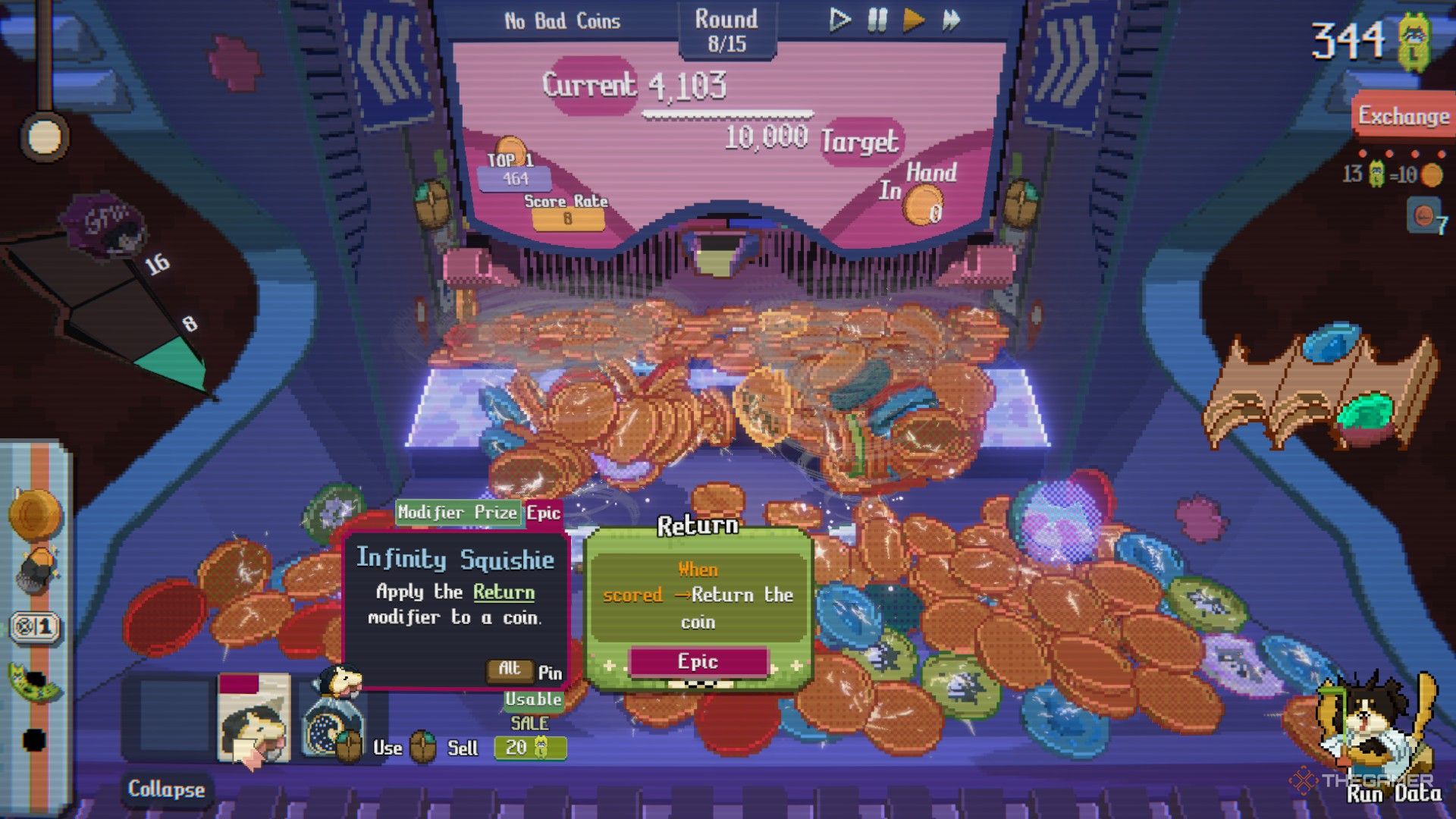 Чем больше вы играете, тем больше Модификаторов вы разблокируете. Это специальные предметы, которые вы добавляете к монете, чтобы дать ей новые способности. Один из самых полезных, которые вы обнаружите, называется Infinity Squishie.