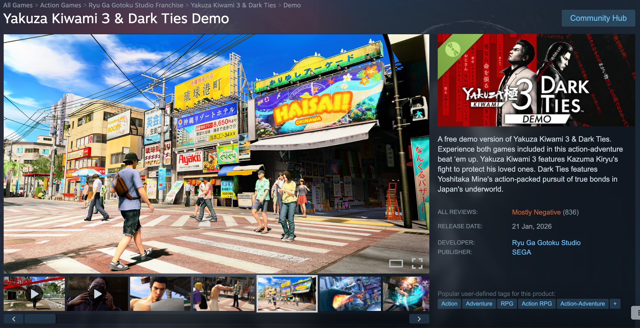 Недавняя демоверсия Yakuza Kiwami 3 и Dark Ties установила рекорд серии, но, к сожалению, по неверной причине. Это первая игра Yakuza, получившая негативные отзывы в Steam.