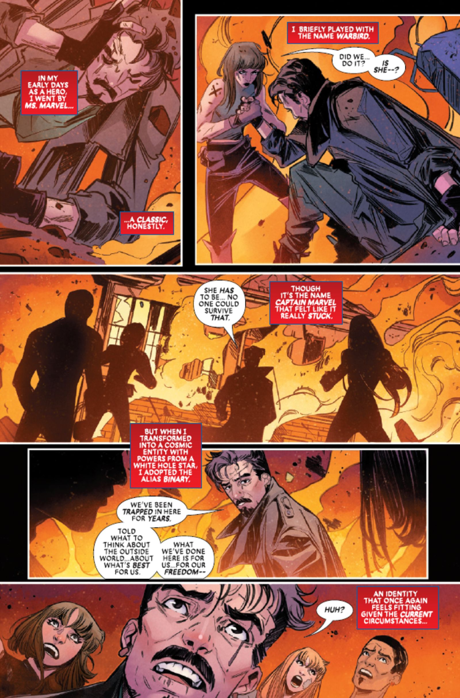 Присоединиться к МстителямПредварительный просмотр нового комикса Marvel *Binary* #1 (от Стефани Филлипс, Джады Бельвизо, Рашель Розенберг и Трэвиса Ланхема) представляет группу повстанцев в Массачусетсе – теперь часть опасных Территорий Откровения – когда они планируют атаку. Их попытка уничтожить здание и его обитателей увенчалась успехом в создании пожара, но в конечном итоге не смогла нанести значительный вред их цели. Повстанцы на самом деле целились в Кэрол Дэнверс, и с их планом сорванным, они теперь столкнутся с могущественным гневом Binary, наделённой силой Силы Феникса.