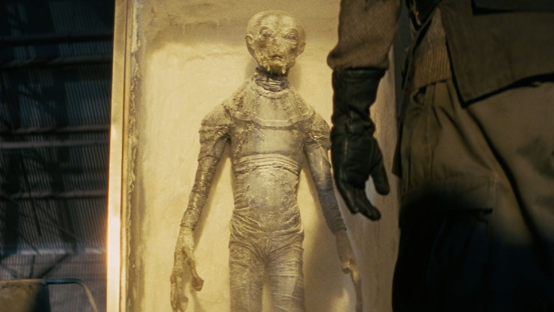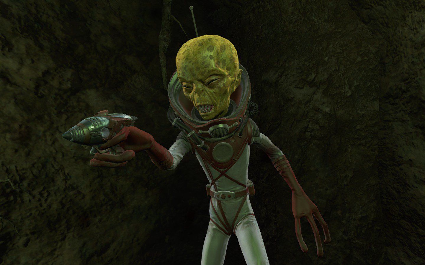 Как только Братство Стали открывает двери ангара, солдат бросается внутрь и обнаруживает морозильник. Внутри они находят замороженное инопланетное лакомство, но вместо того, чтобы заинтересоваться самим инопланетянином, они небрежно разбивают его – и контейнер, в котором он находился – на полу. Очевидно, что инопланетяне не пользуются популярностью, и многие игроки также не были поклонниками DLC Mothership Zeta.
