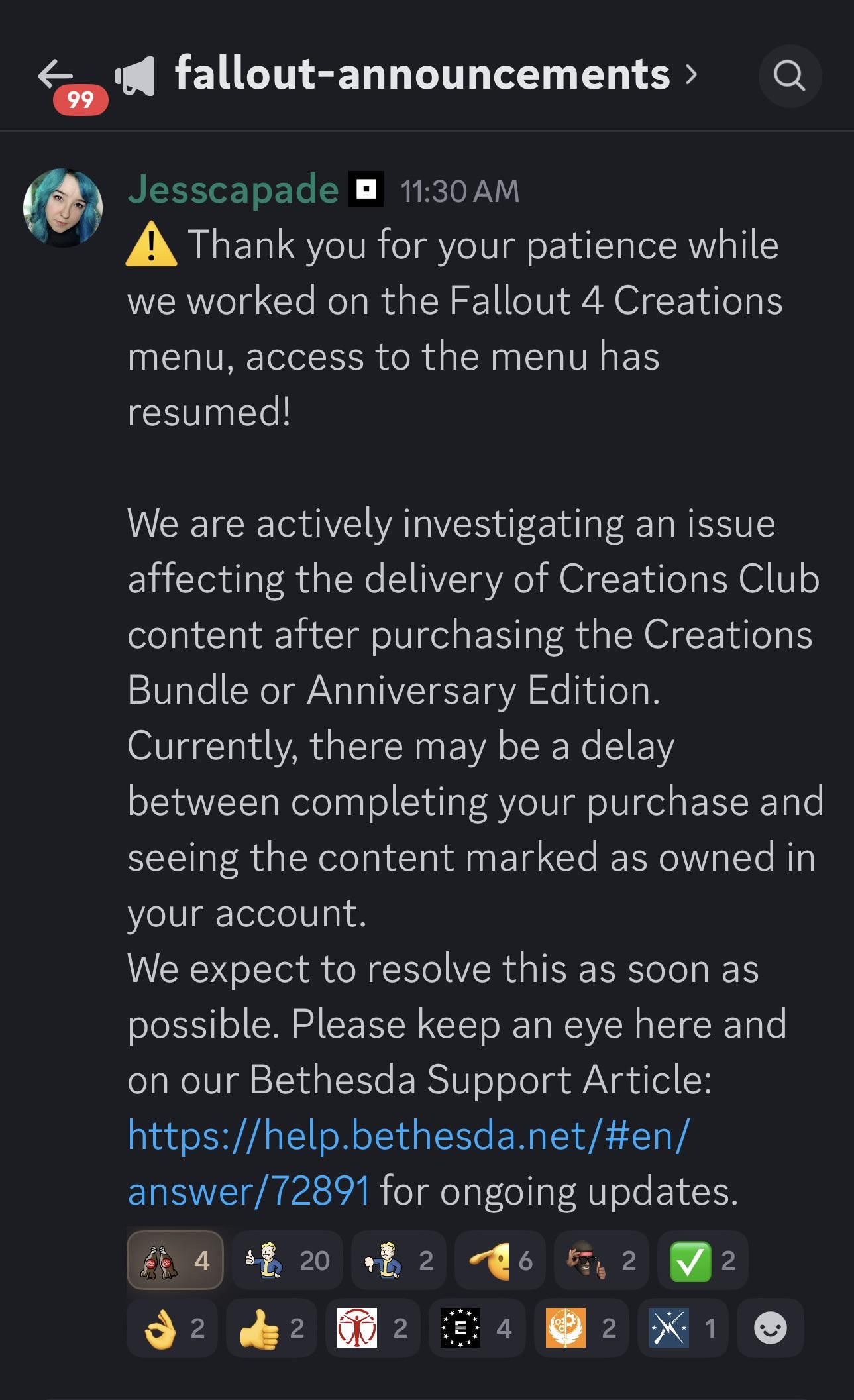 Итак, Bethesda наконец-то высказалась по поводу проблем, с которыми сталкиваются люди с Anniversary Edition Fallout 4 и контентом Creations Club. По сути, они разбираются, почему контент так долго появляется в наших аккаунтах после покупки. Хорошо знать, что они работают над этим! Звучит так, будто это проблема не для всех, и это даже может зависеть от того, какие моды у нас уже установлены. Надеюсь, они быстро всё решат – я действительно рад начать играть со всем новым контентом!