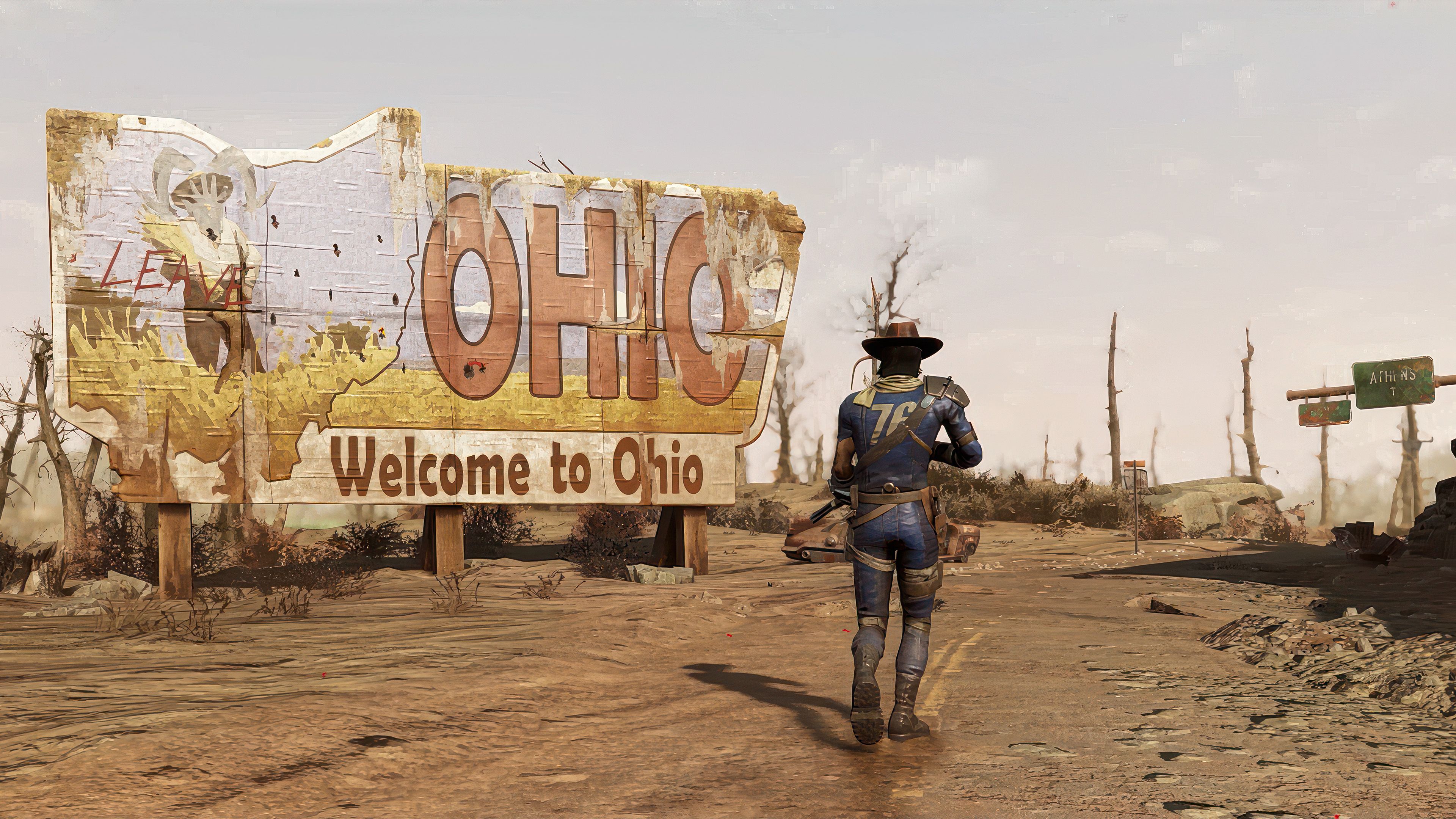 Я заметил, что Огайо часто становится объектом шуток в сети, и это действительно взлетело в виде мемов в последние годы. Это началось примерно в 2022 году с идеи, что там всегда происходит что-то действительно странное – эта штука с надписью ‘Only in Ohio’. Теперь, просто сказав ‘Ohio’ в сети, по сути, означает, что что-то странное, тревожное или просто… неловкое. Поэтому, когда я услышал, что новое место действия для Fallout 76 основано на Огайо, я сразу задался вопросом – что именно делает это Огайо таким особенным и как это вписывается в эту общую атмосферу ‘там происходят странные вещи’?