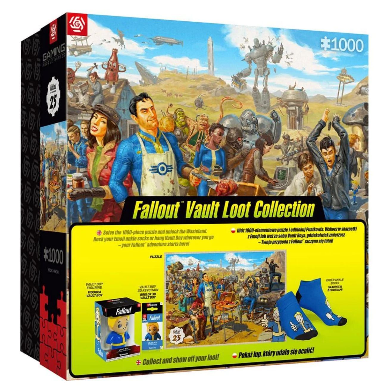 В честь 25-летия Fallout открыт предзаказ на пазл из 1000 деталей стоимостью $137.99. После сборки пазл раскроет скрытые знания из мира Fallout. Полный подарочный набор, а также другие официально лицензированные товары Fallout от Merchoid – включая резиновую уточку Nuka-Cola T-51 и новую серию коллекционных бутылок Nuka-Glass – будут выпущены 24 апреля и ожидаются в продаже позднее в этом месяце.