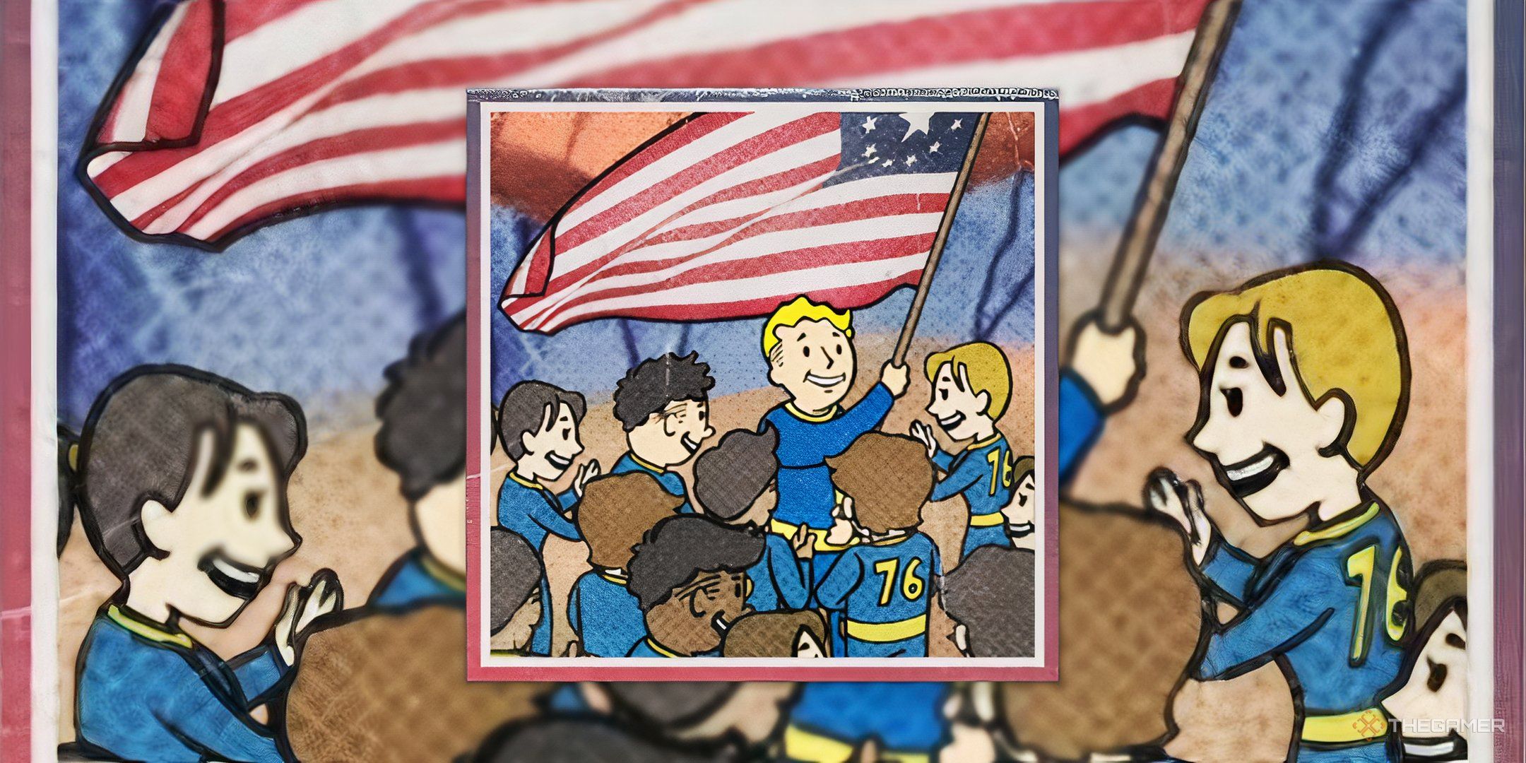 Я наткнулся на интригующий «мем Fallout» Финфрока, изображающий круг жителей Убежища, который был поразительно похож на внутриигровой предмет под названием «Связка с развевающимся флагом» в Fallout 76. Художник, создавший этот шедевр, с нетерпением взял на себя задачу свяжитесь с Бетесдой.
