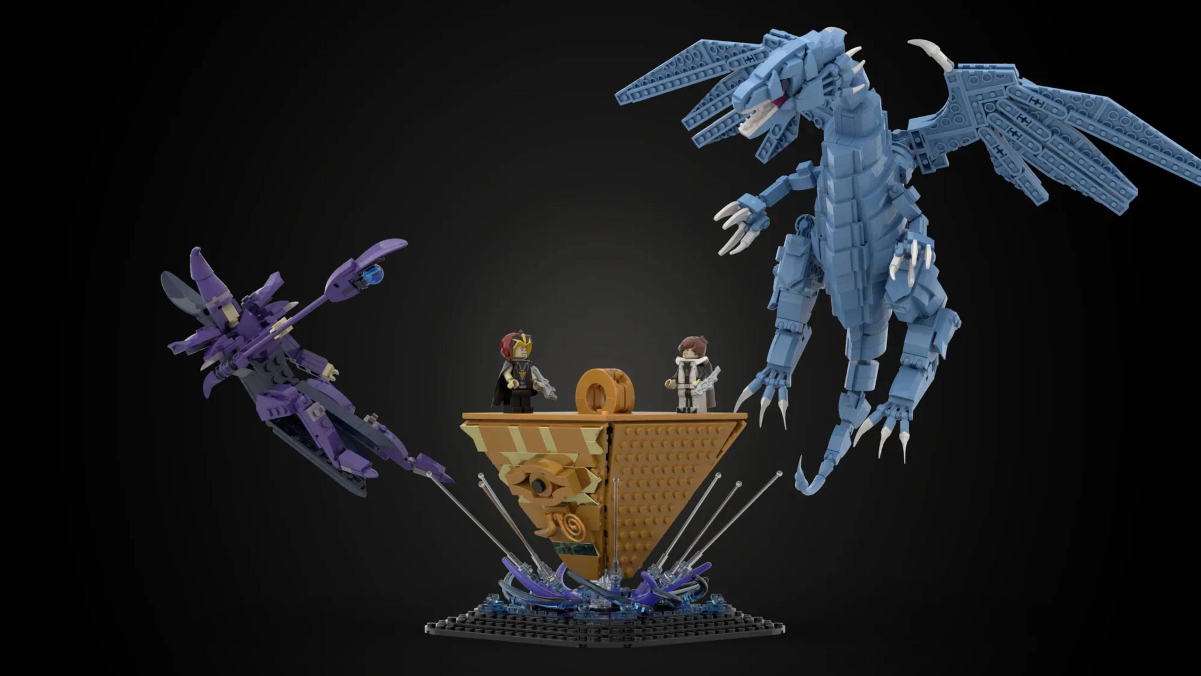 Brian b59124’s Duel Display – это набор из 595 деталей, демонстрирующий Синеглазого Белого Дракона, возвышающегося над минифигуркой Сето Каибы. Brick_flex’s Duel of Eternal Rivals изображает битву Дракона с Тёмным Магом Юги, а Moccermommey расширил этот конфликт с помощью еще большего набора Duel Across the Millennia, также с участием этих двух культовых монстров.