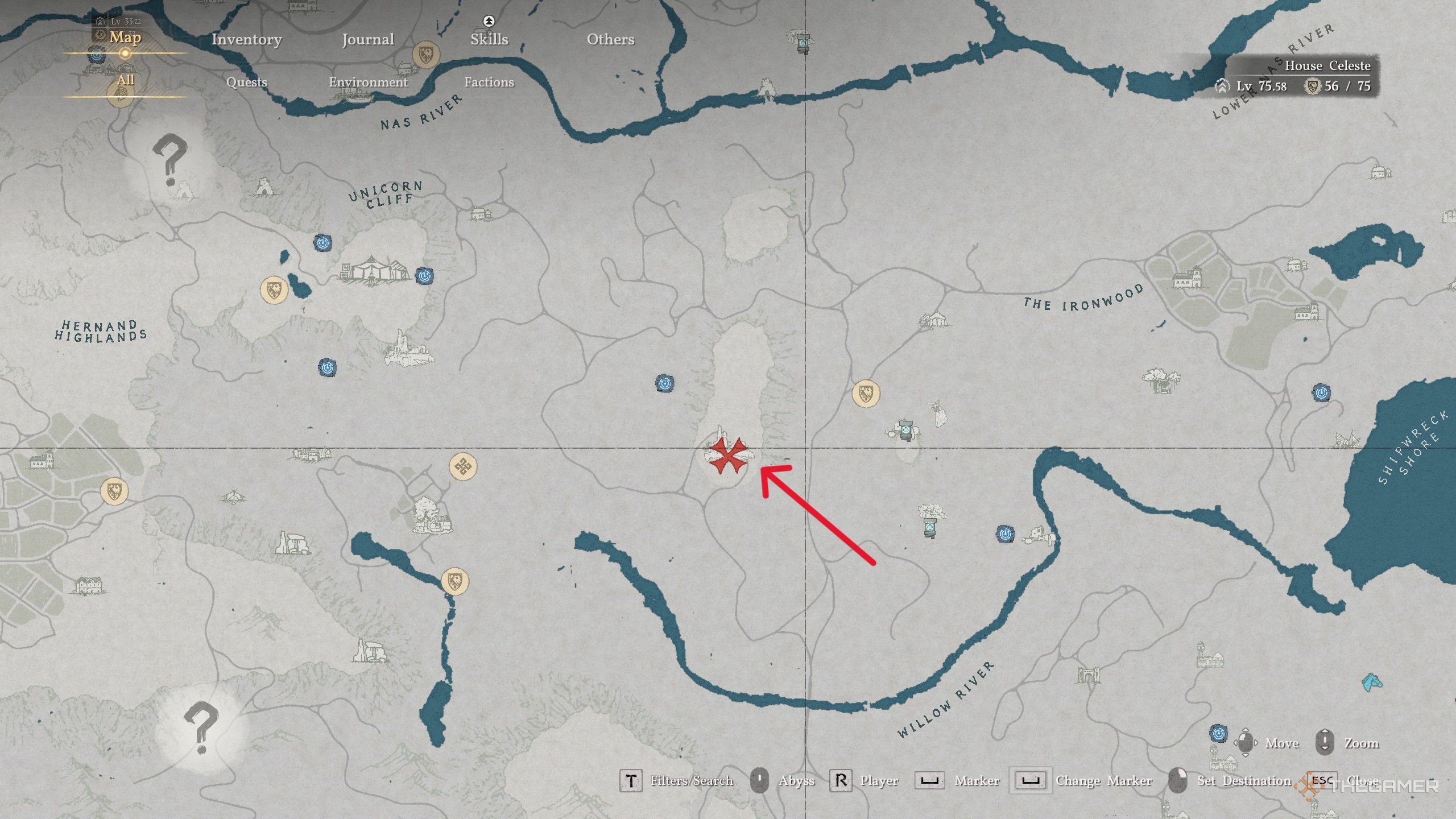 Поспешите спасти человека, который вот-вот упадет – вы обнаружите, что он на самом деле ведьма и сможете войти в ее дом. Он расположен к югу от столицы Деменисса, в цепи скалистых островов, известных как Болото Змеи. Найдите Врата Бездны в центре островов и небольшую тропинку, ведущую к дому ведьмы прямо под точкой быстрого перемещения.