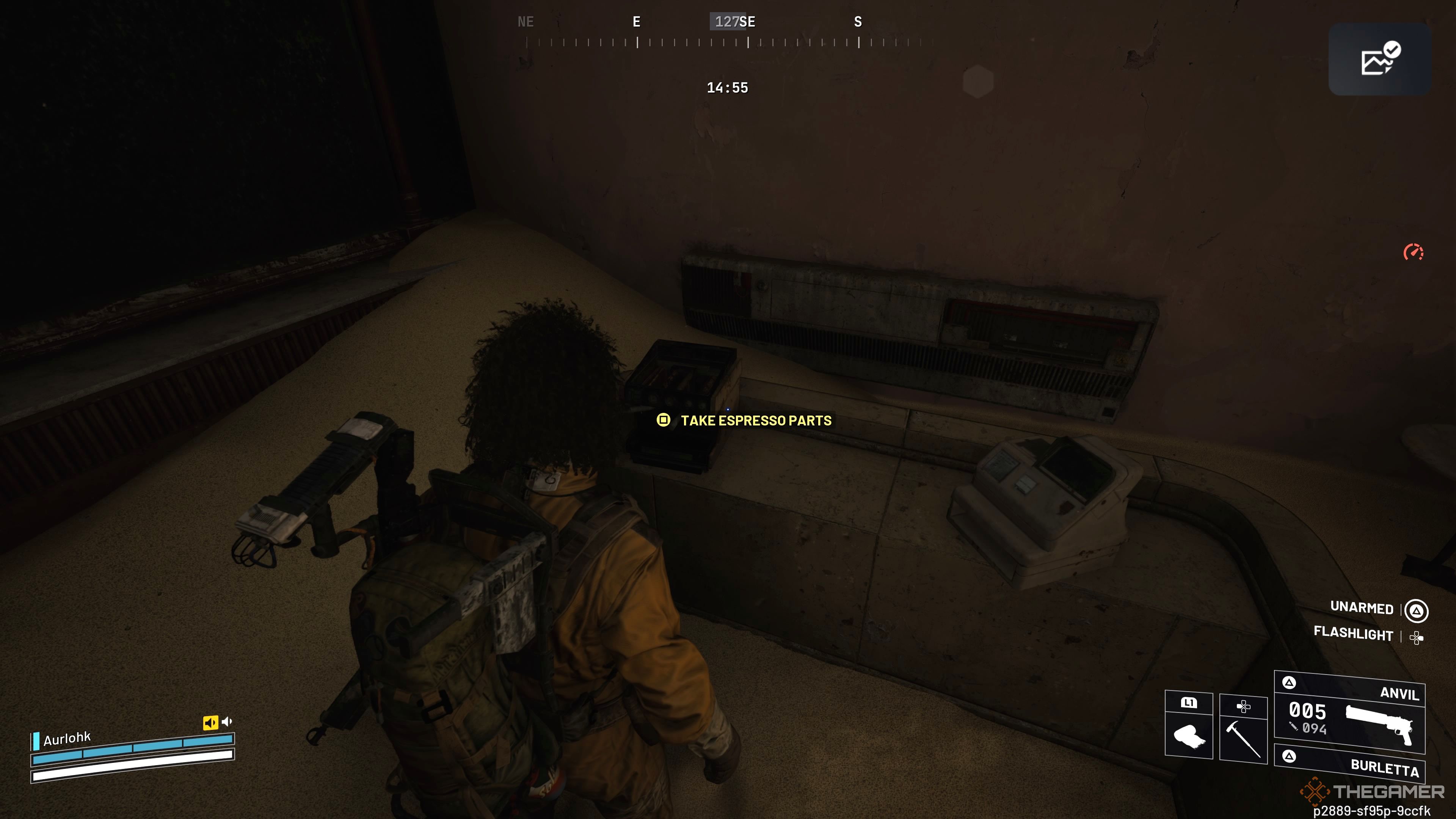 Окей, так я вошёл внутрь и обошёл за стойку в первой комнате. Затем я нашёл этот аппарат, спрятанный в углу стойки, прямо рядом с поломанным кондиционером на стене, и взаимодействовал с ним.
