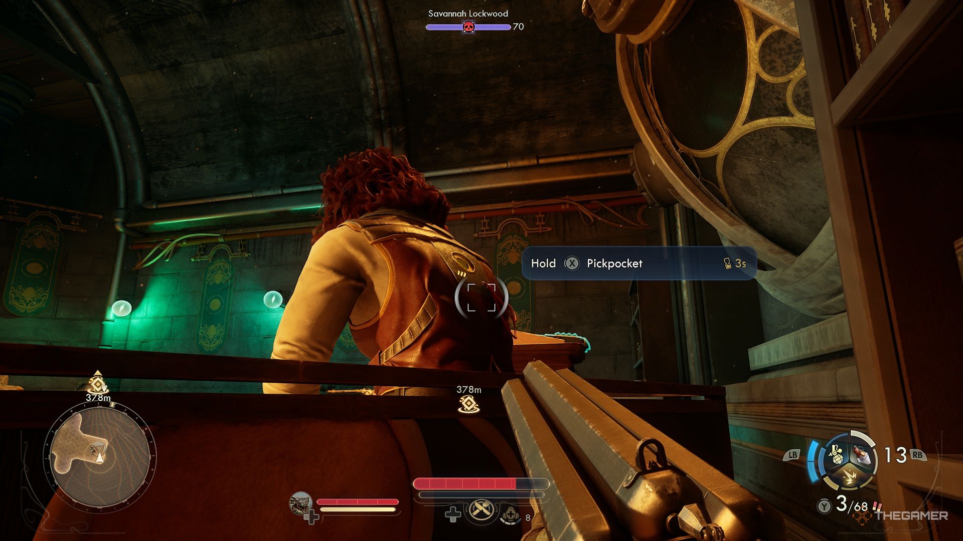 Чтобы пройти мимо неё, вам нужно быстро переместиться за её стойку и протиснуться в угол. Чтобы украсть у кого-то, присядьте – это вызовет кнопку на экране. Успешное выполнение этого позволит вам получить доступ к его вещам, включая журнал.