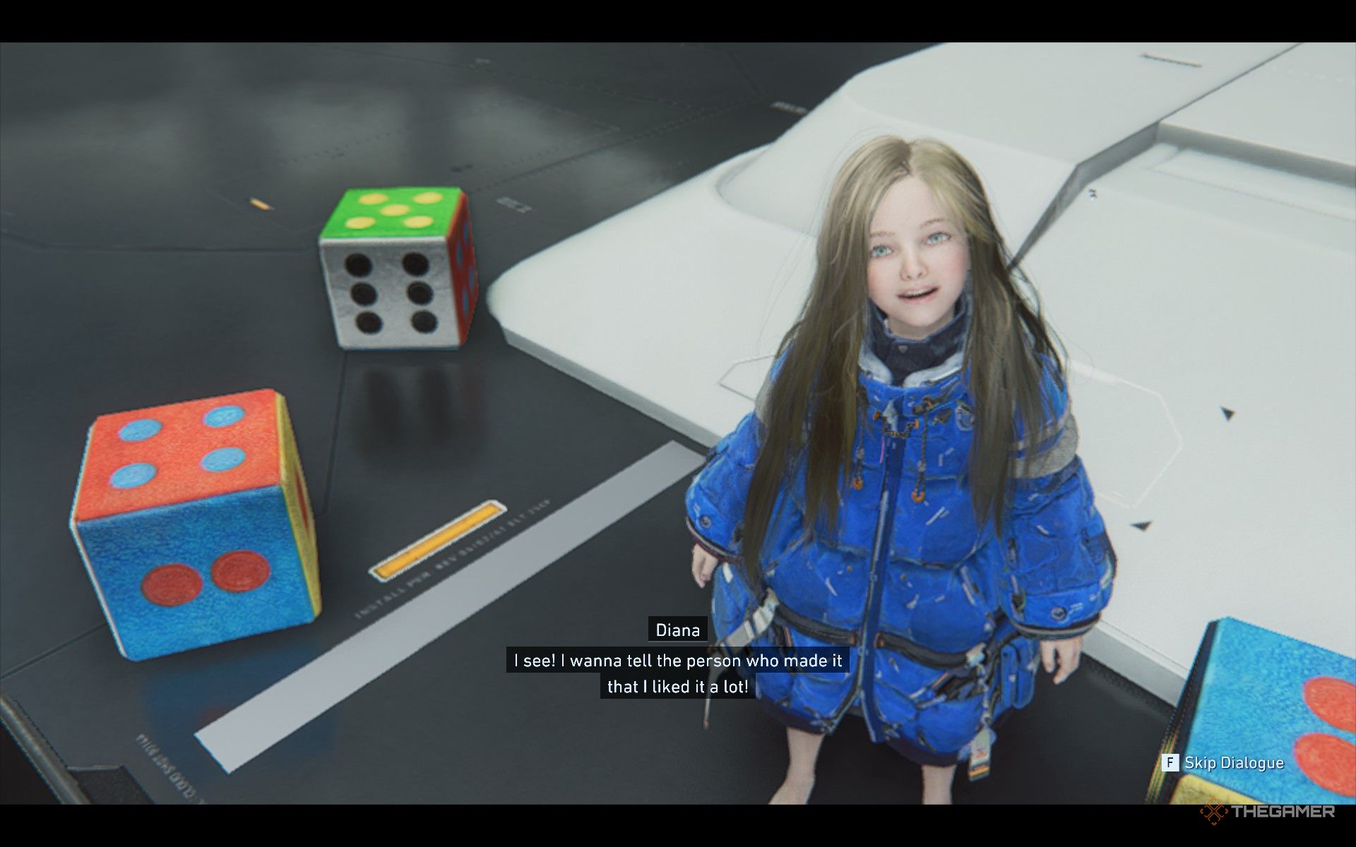 Если вы поместите REM-юнит в Укрытие, вы сможете наблюдать за реакциями Дианы каждый раз, когда будете возвращаться. Она будет комментировать и играть с REM-предметами, когда находит что-то новое, позволяя вам увидеть, как она с ними взаимодействует.
