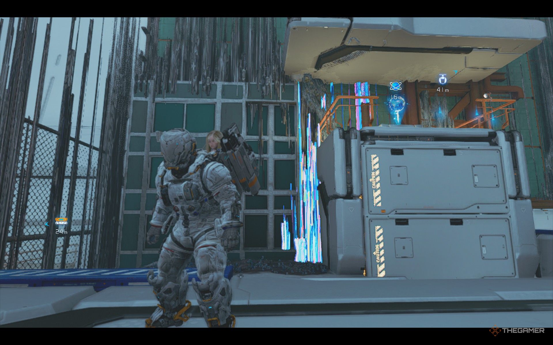 | Слайд | После взлома второго замка в зоне станции Interconnecting Passageway , вы увидите следующего REM впереди, но опять же, для его получения потребуется решить головоломку. Поднимитесь на лифте в костюме, спрыгните вниз и перепрыгните через забор, блокирующий ваш путь, по пути подбирая сундук с сокровищем с Cabin Coin. |