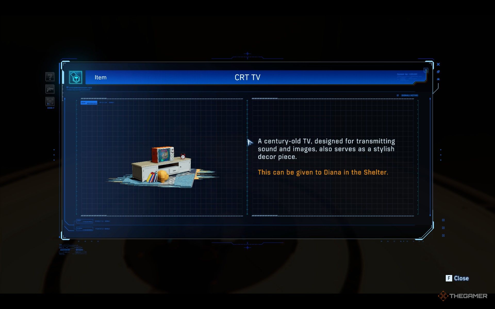 | ЭЛТ-телевизор | После большой схватки с ботами в зоне Lim Recycling в Recycling Control станции, вы снова пополните запасы снаряжения после боя в коридоре на другой стороне. Этот REM находится на платформе перед тем, как вы пройдёте сквозь лазеры, справа. Хью прокомментирует конец пути, когда вы будете рядом. |