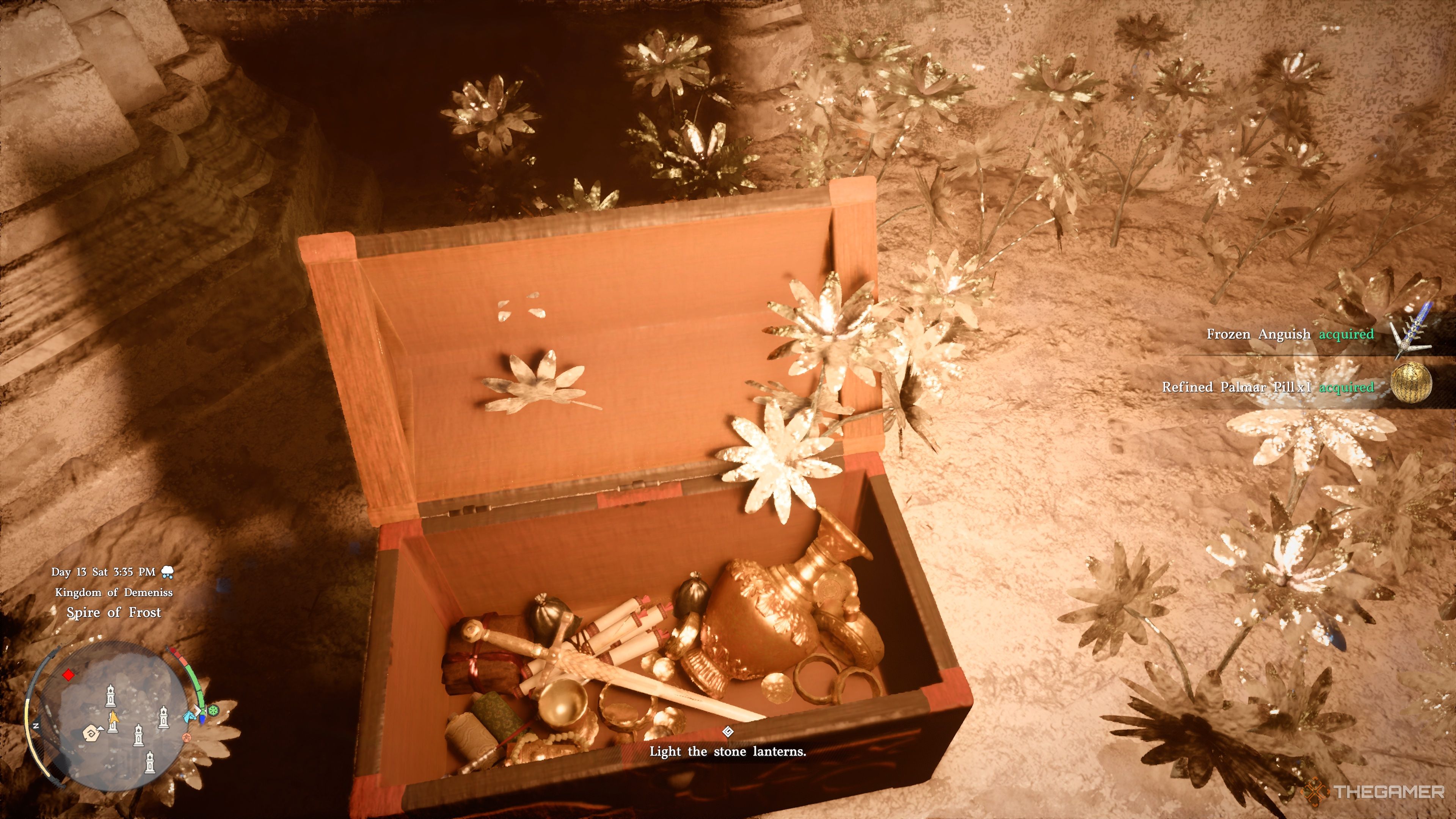 В этой области очень холодно, поэтому лучше всего получить набор брони Frostcursed Plate Armor Set. Он защитит вас от опасного холода и предотвратит серьезные повреждения. Кроме того, броня отлично смотрится с соответствующим оружием!