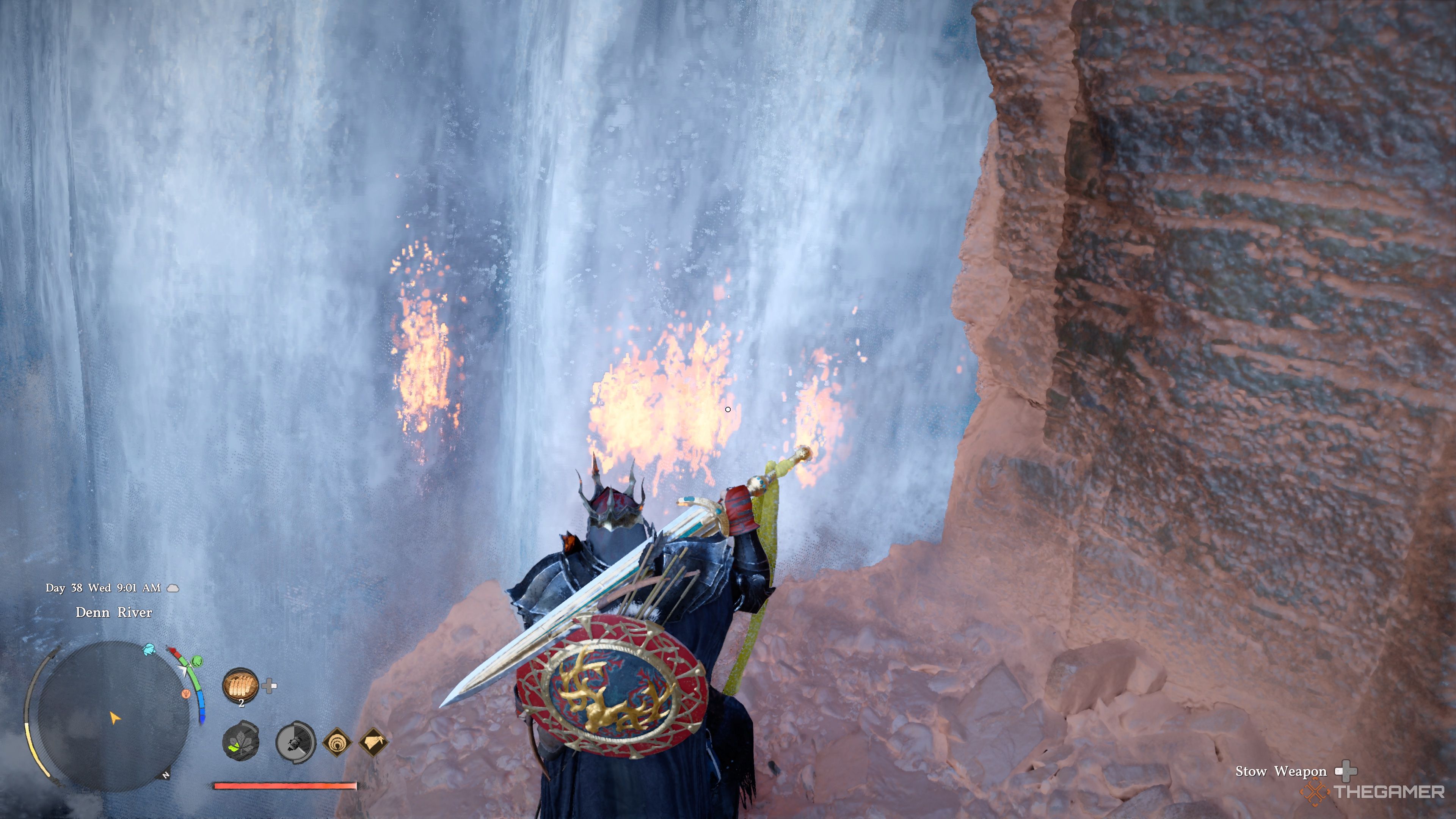 Чтобы легко добраться до подножия водопада, подойдите к нему с северо-запада и спрыгните сверху, по сути, планируя к доступной области.