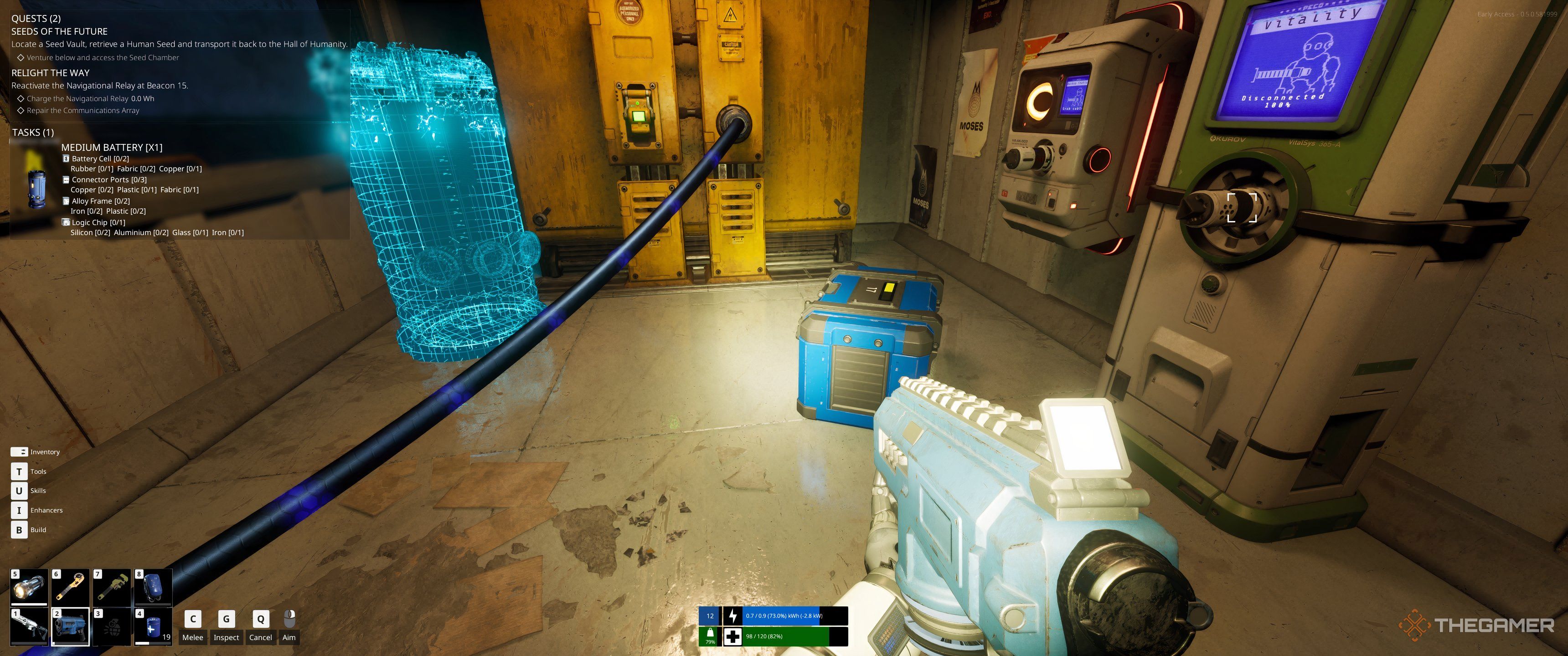 Учитывая, что у вас, вероятно, много доступных материалов, мы предлагаем построить небольшую электростанцию. Также внутри предостаточно лома, который можно разобрать, что должно легко дать вам достаточно ресурсов для трех или четырех турбин и солнечных панелей. Помните, что необходимо установить надежный, непрерывный источник питания для этой центральной комнаты.