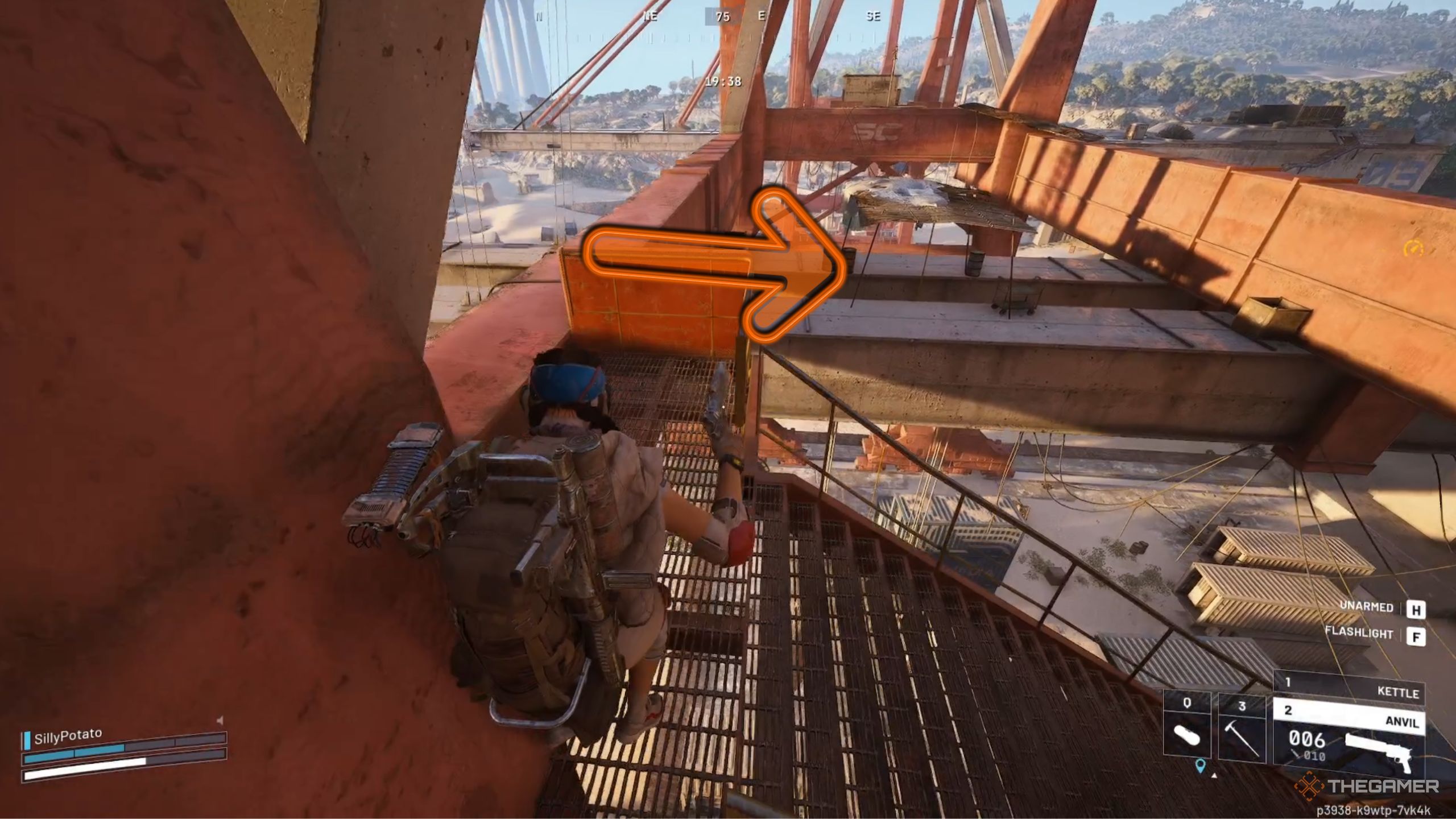 Чтобы выполнить это задание, вам нужно найти и укрепить базу Рейдеров, построенную на кране. Отправляйтесь на Складочную площадку – она отмечена как жёлтая зона в верхней-средней части карты. По прибытии ищите высокие красные краны.