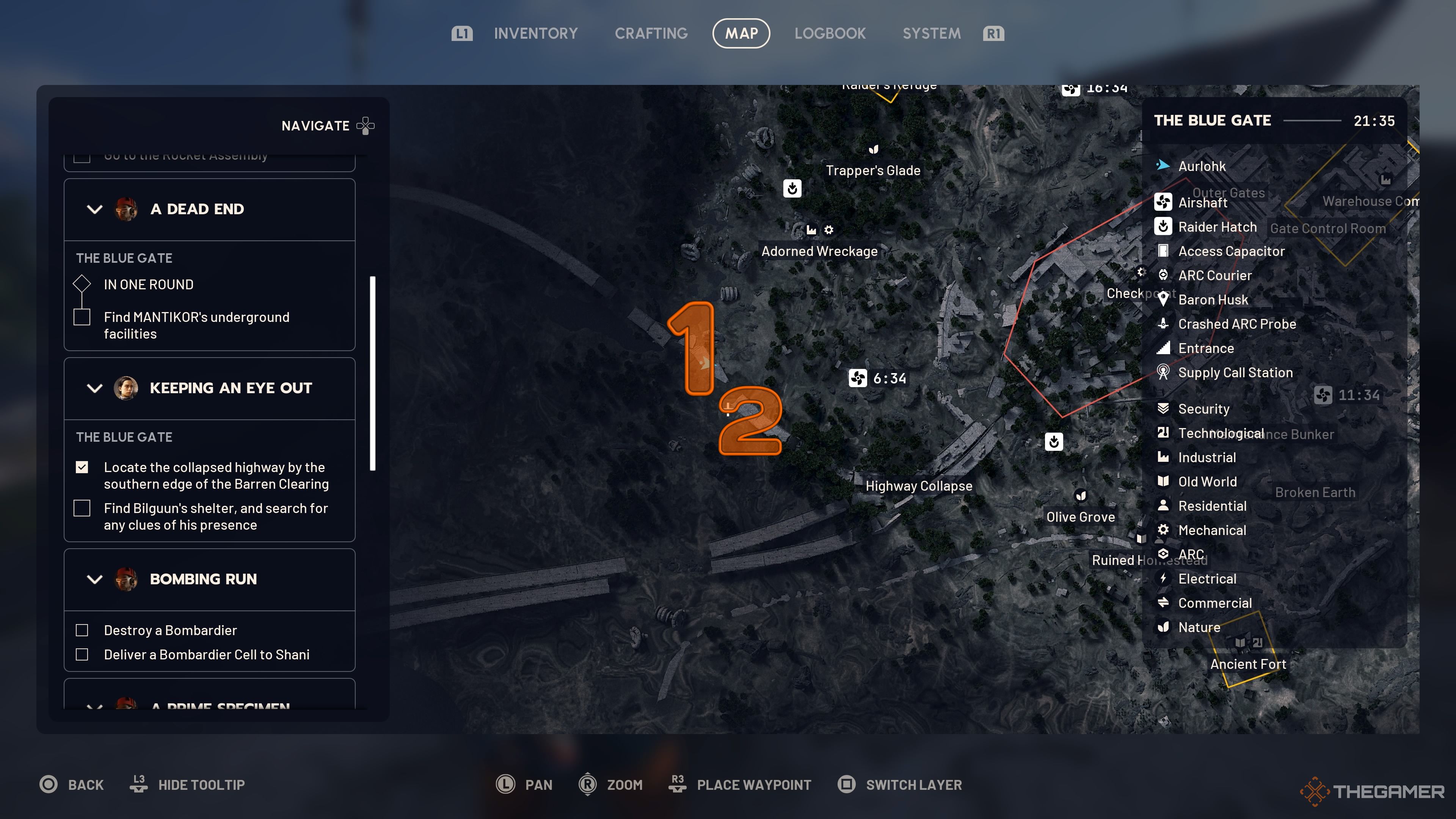 - Если у вас нет ни одного из них, отправляйтесь к Highway Collapse к югу от Checkpoint POI и поднимайтесь вверх, затем продолжайте движение по шоссе на запад, пока не достигнете края, где находится убежище, а затем спуститесь и ухватитесь за выступ.