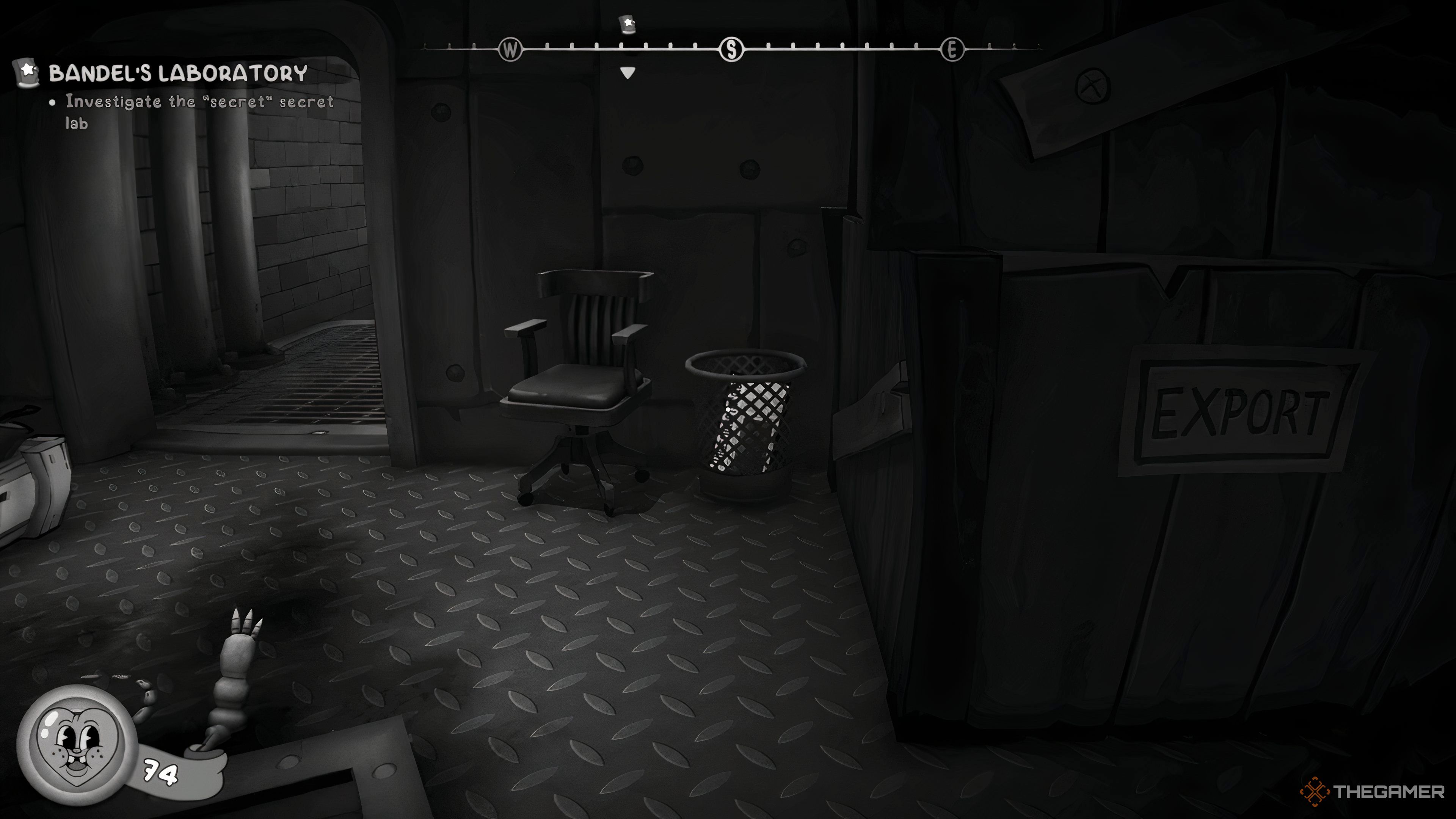 Достигнув комнаты с видом на секретную (секретную) лабораторию и, по сути, конец миссии, вы найдете печатную машинку и письмо «Строительство Бетти — День 88». Прежде чем продолжить, проверьте угол, чтобы найти мусорную корзину с Газетой внутри. |