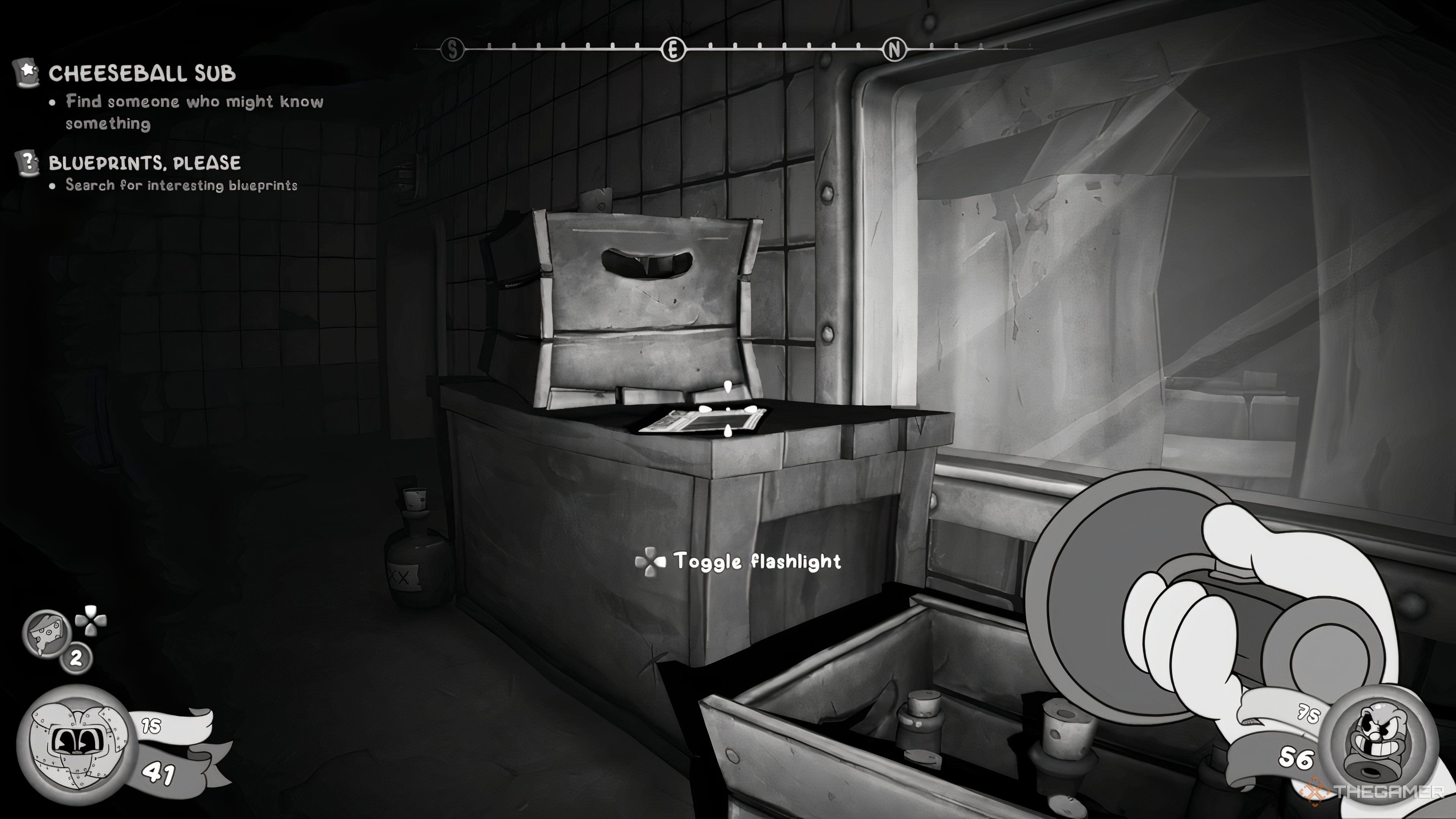 Вскоре после того, как вы пройдете через большую квадратную комнату с несколькими врагами, вы дойдете до пишущей машинки, чтобы сохраниться. Сразу после сохранения вы войдете в серию комнат, где вам предстоит включать и выключать фонарик. Во второй комнате, в которую вы войдете, поверните налево, и вы должны увидеть Газету, лежащую на стопке ящиков. |