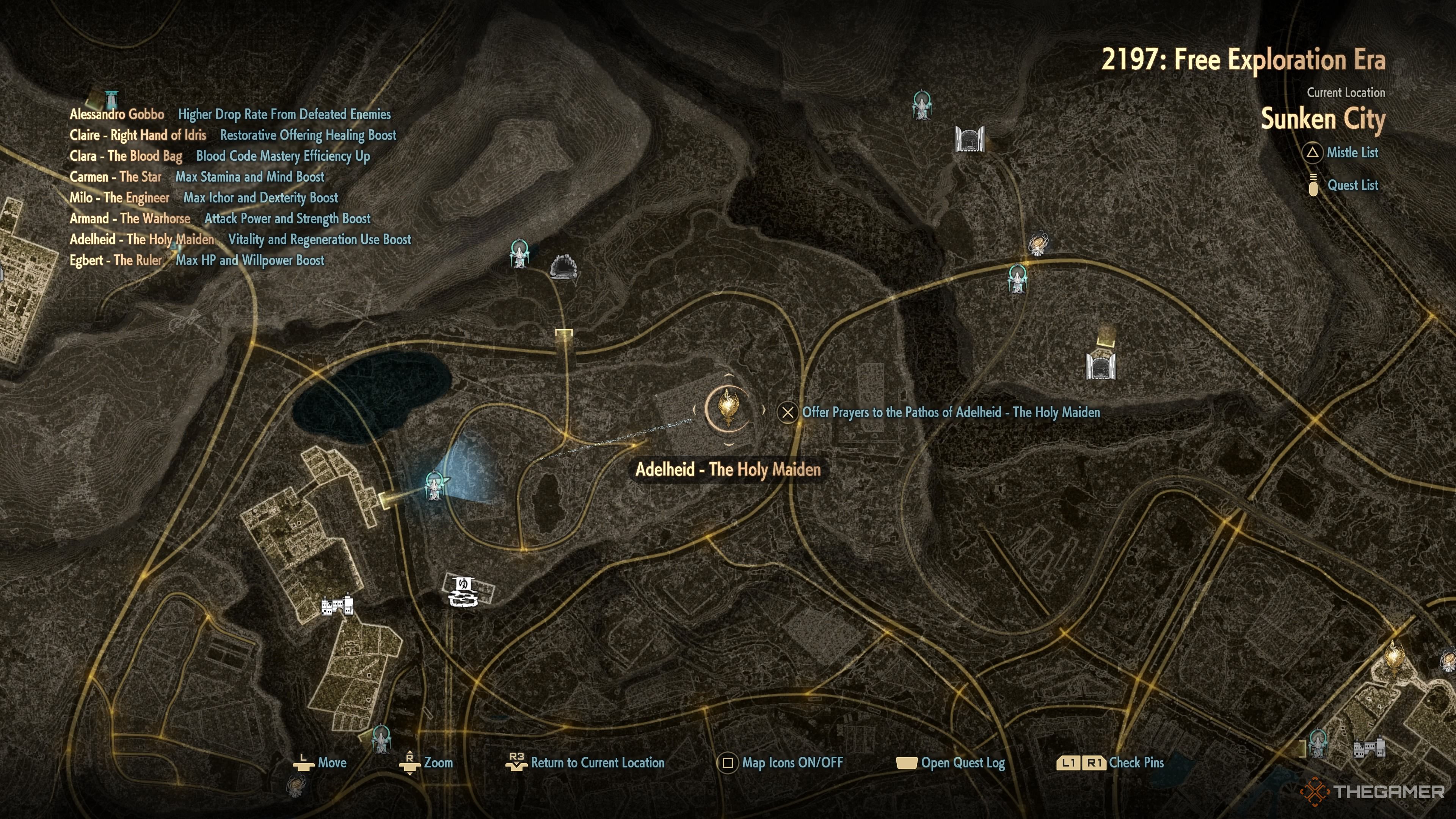 Окей, я наконец-то нашёл Адельхайд! Она к востоку от тумана Plateau Overlooking City mistle, и вам нужно подняться по большой лестнице сбоку собора, чтобы добраться до неё. Это определенно стоит того, хотя бы потому, что она увеличивает вашу Живучесть и даёт вам ещё одно использование колбы Регенерации. Определённо полезная находка!