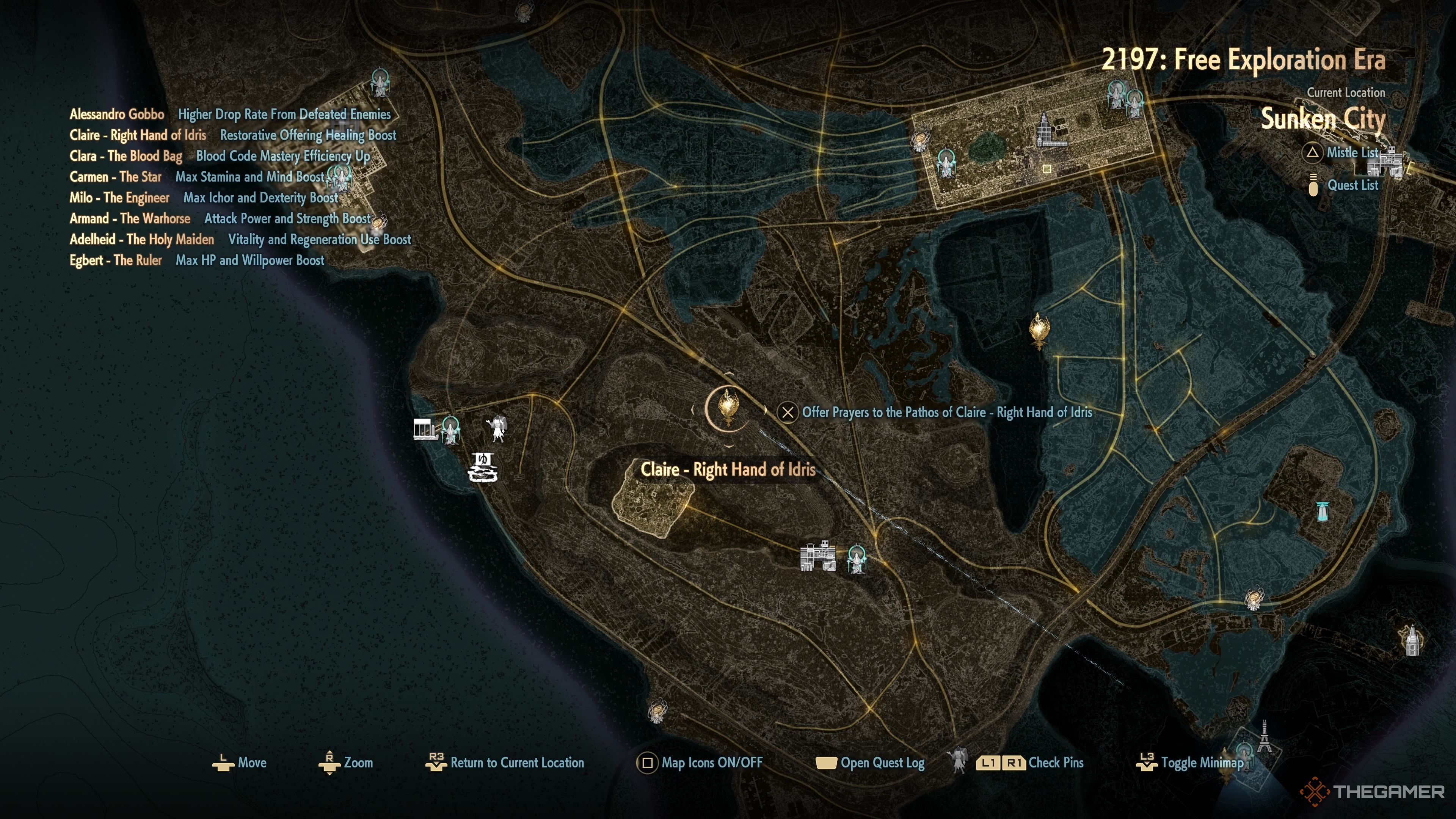 Вы можете найти Clair к северо-западу от руин Западных Ворот, сидящую на скале над ними. Она предоставляет бонус к здоровью каждый раз, когда вы используете Regeneration. Она является одним из Regional Pathos, что означает, что она доступна во всем игровом мире.