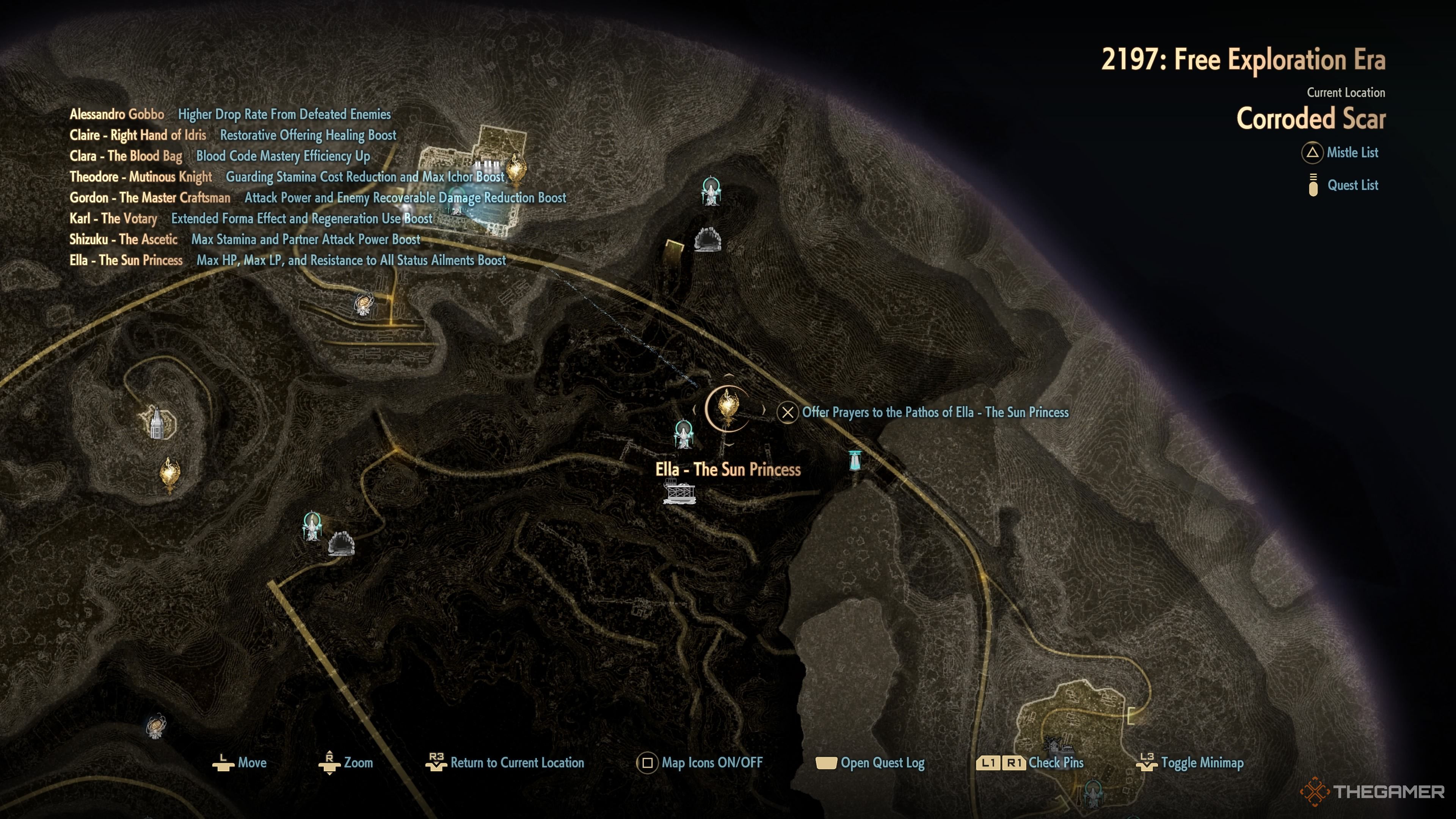 Вы найдёте Эллу сразу к северо-востоку от Corroded Mine. Она увеличивает ваш максимальный запас здоровья и жизненных очков, а также делает вас более устойчивым к негативным эффектам статуса.