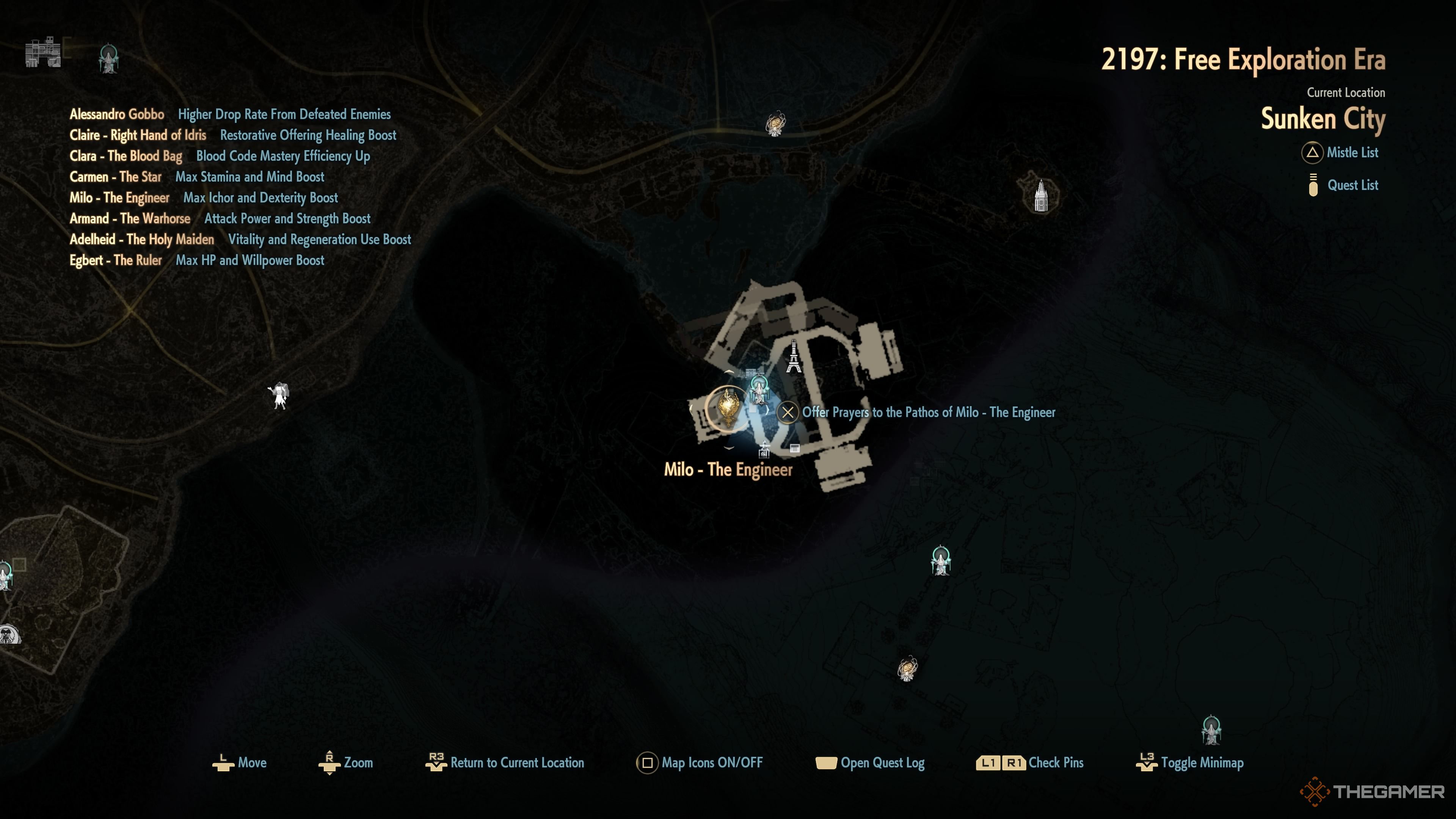 Окей, так я наконец-то нашёл Milo! Он спрятан глубоко в Sunken Pylon, который находится довольно далеко на западе на карте. Он потрясающий, потому что увеличил мой максимальный Ichor и также дал приятный прирост к моей Dexterity. Определенно стоит потратить время на его поиски!