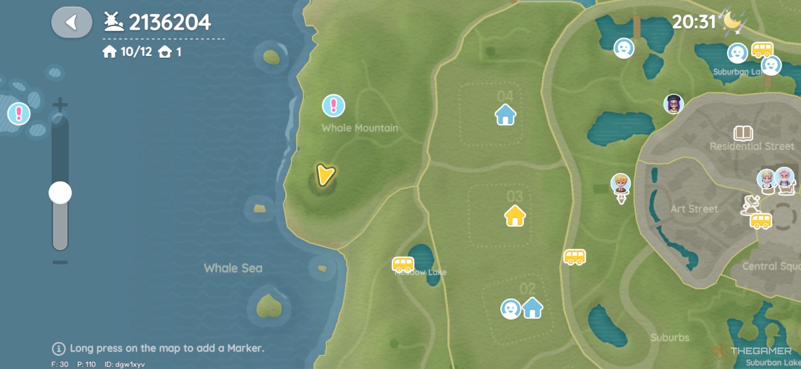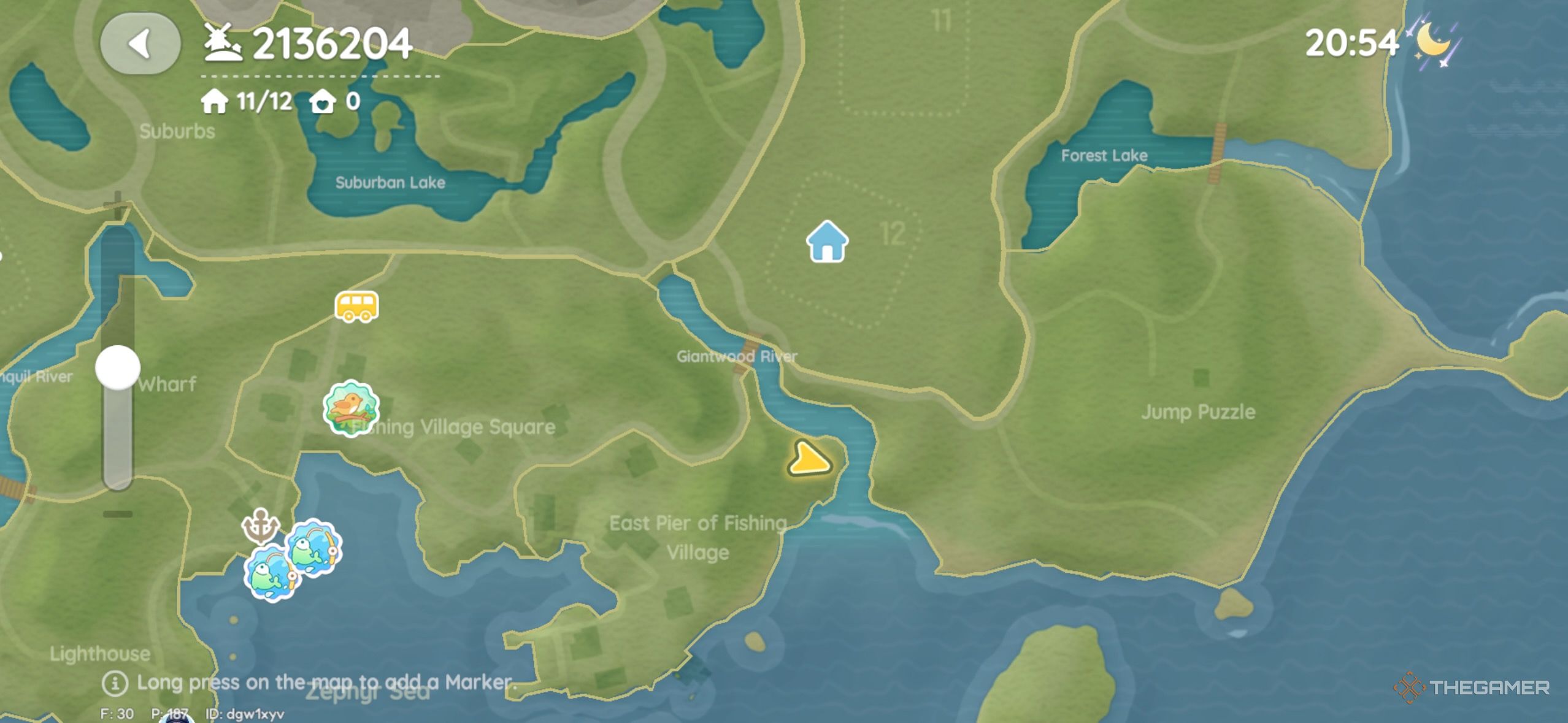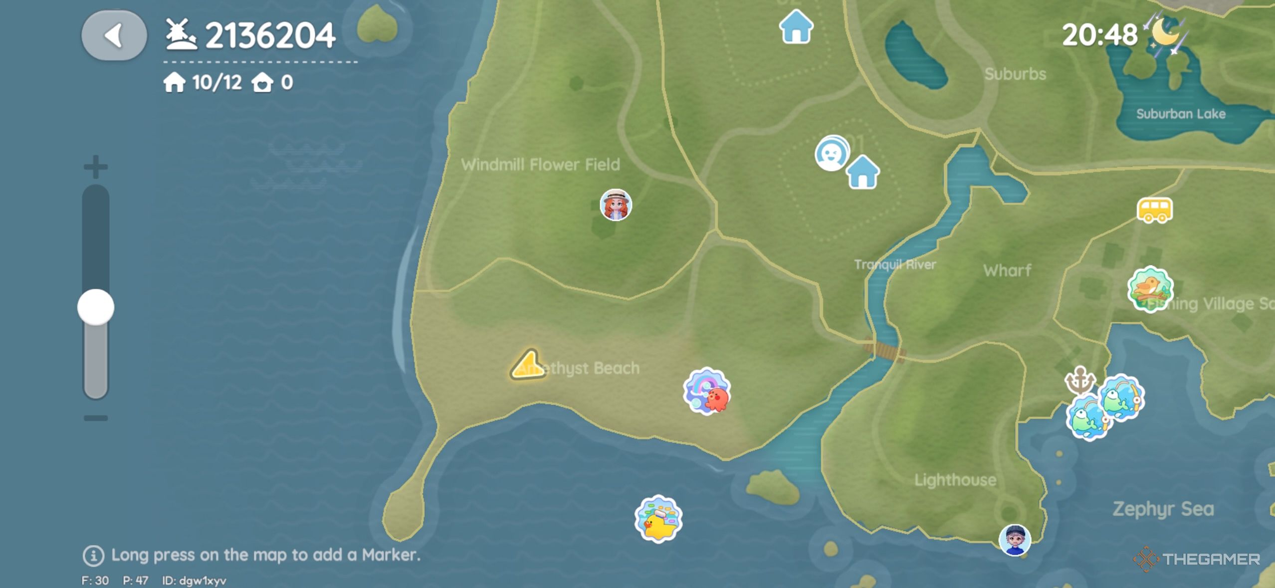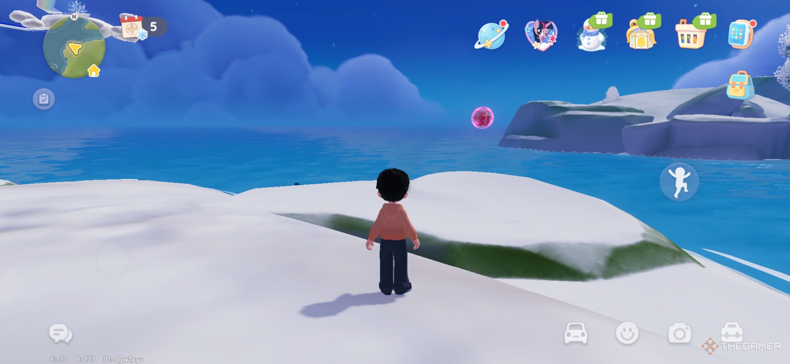 На западной стороне карты вы можете найти розовый пузырь чуть севернее Горы Китов. Этот парит над островом и возвращается обратно. Так что, возможно, вам придется подождать, пока он вернется, прежде чем вы сможете его схватить. |