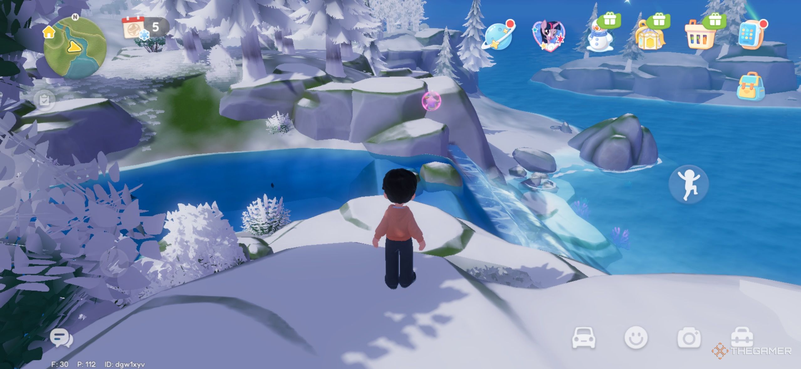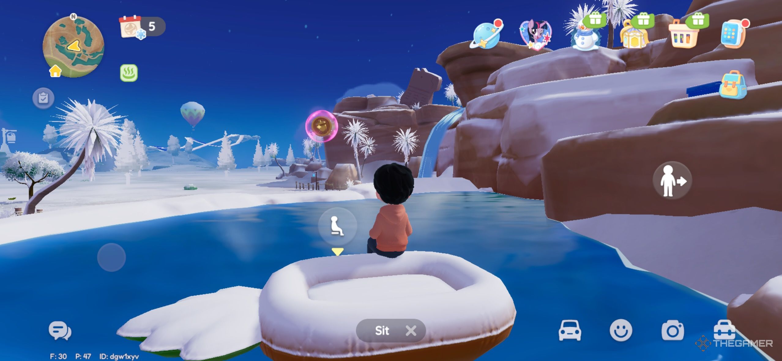 Там есть розовый пузырь парящий над водопадом, который находится между Восточным пирсом Рыбацкой деревни и зонами с головоломками с прыжками. Вы можете найти это место в юго-восточном углу карты. |