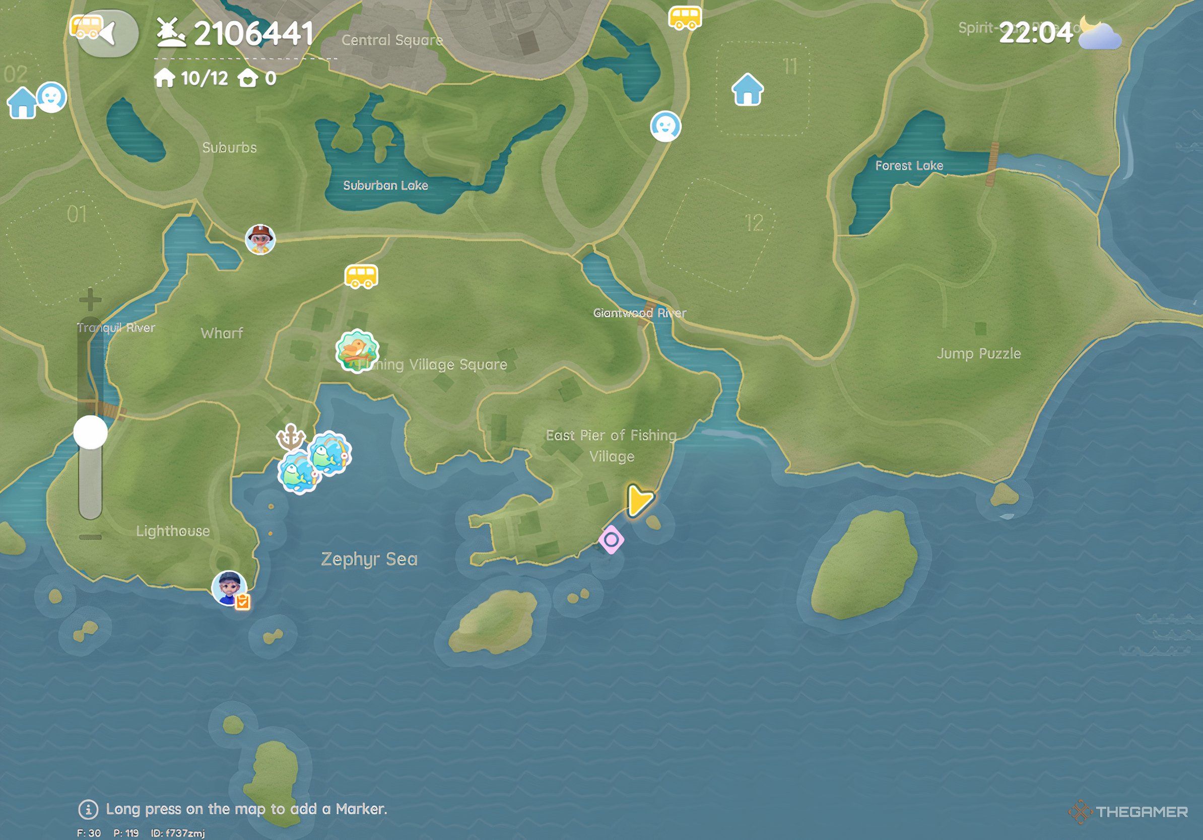 Этот пузырь можно найти на пирсе дома, расположенного вдоль южной границы Восточной Рыбацкой Деревни.