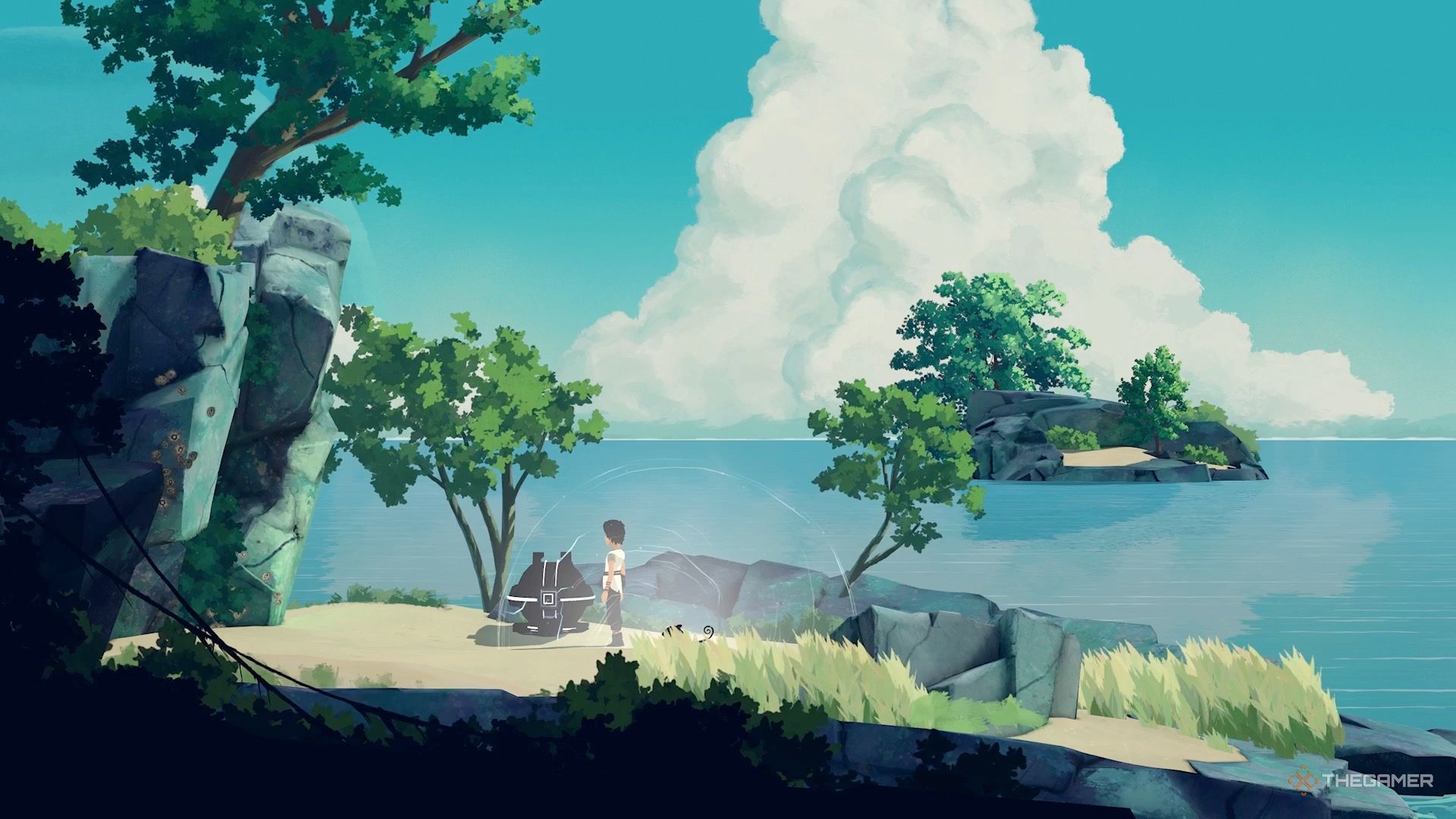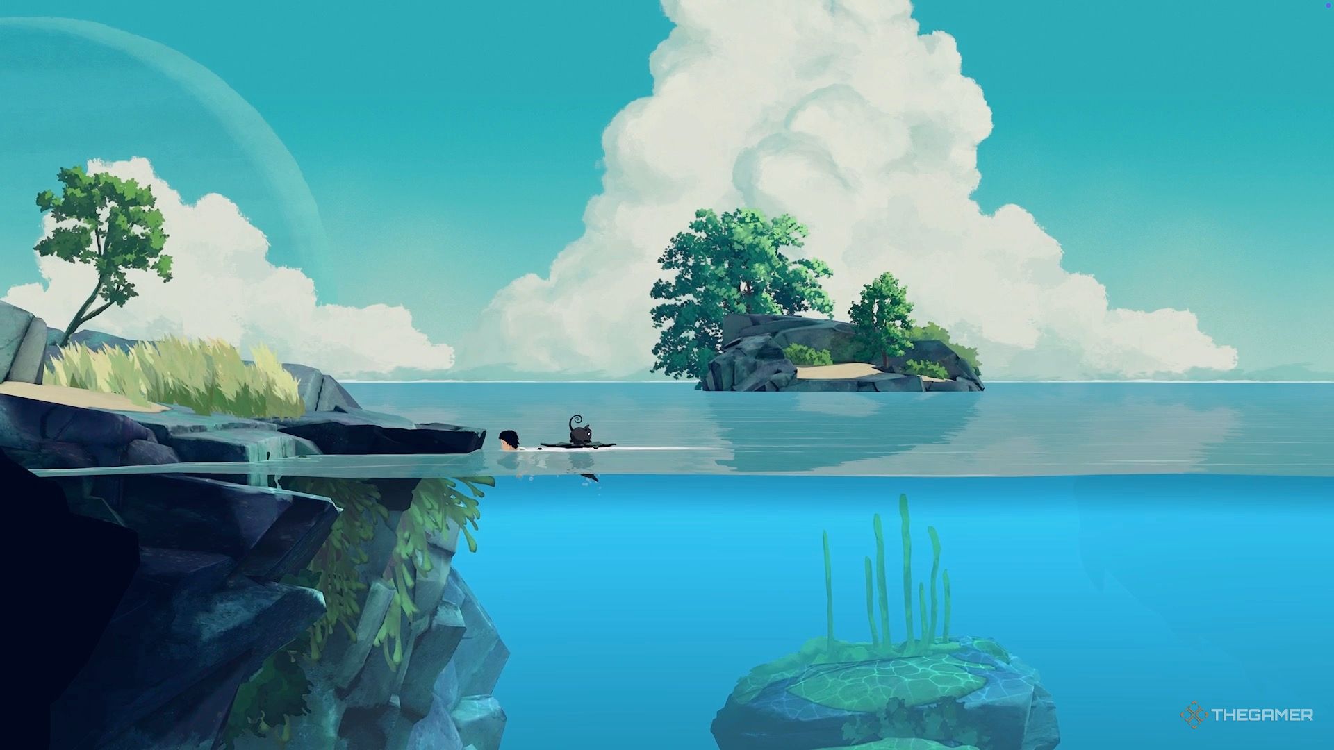 Как только вы приведете всех электрических медуз к Муи, используйте своего компаньона, чтобы открыть чёрные полосы под водой. Это приведёт вас к большой открытой области. Плывите вверх к поверхности, а затем поверните налево, чтобы найти небольшой остров — там находится коллекционный предмет, который вы ищете.