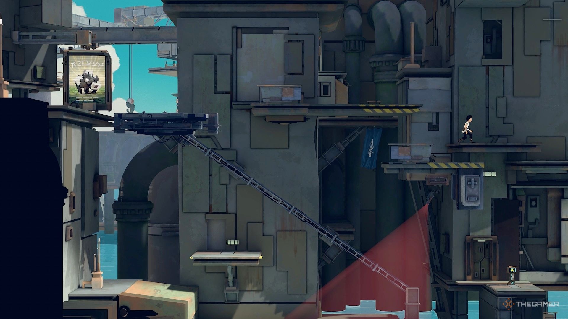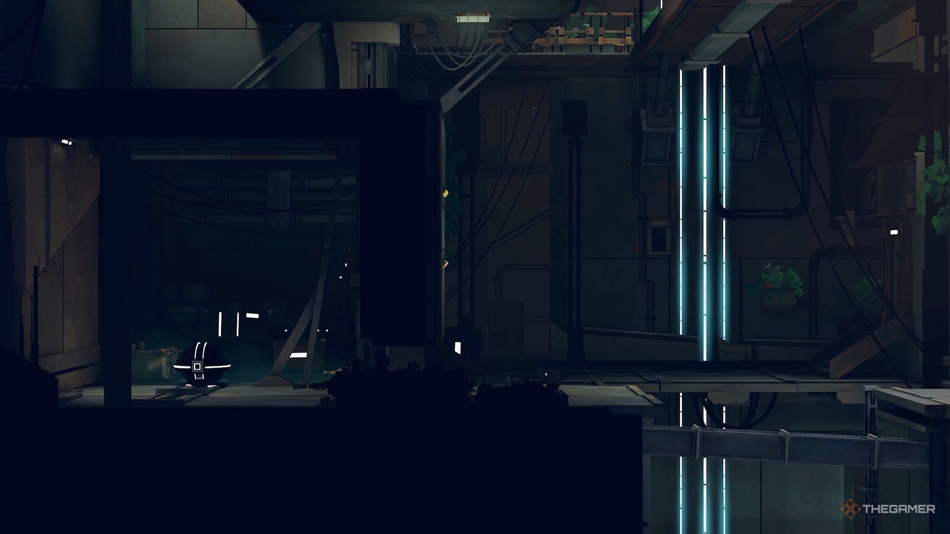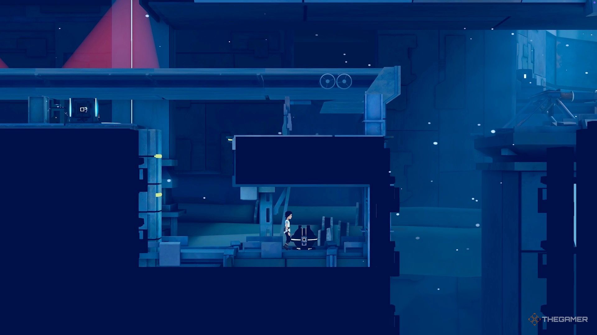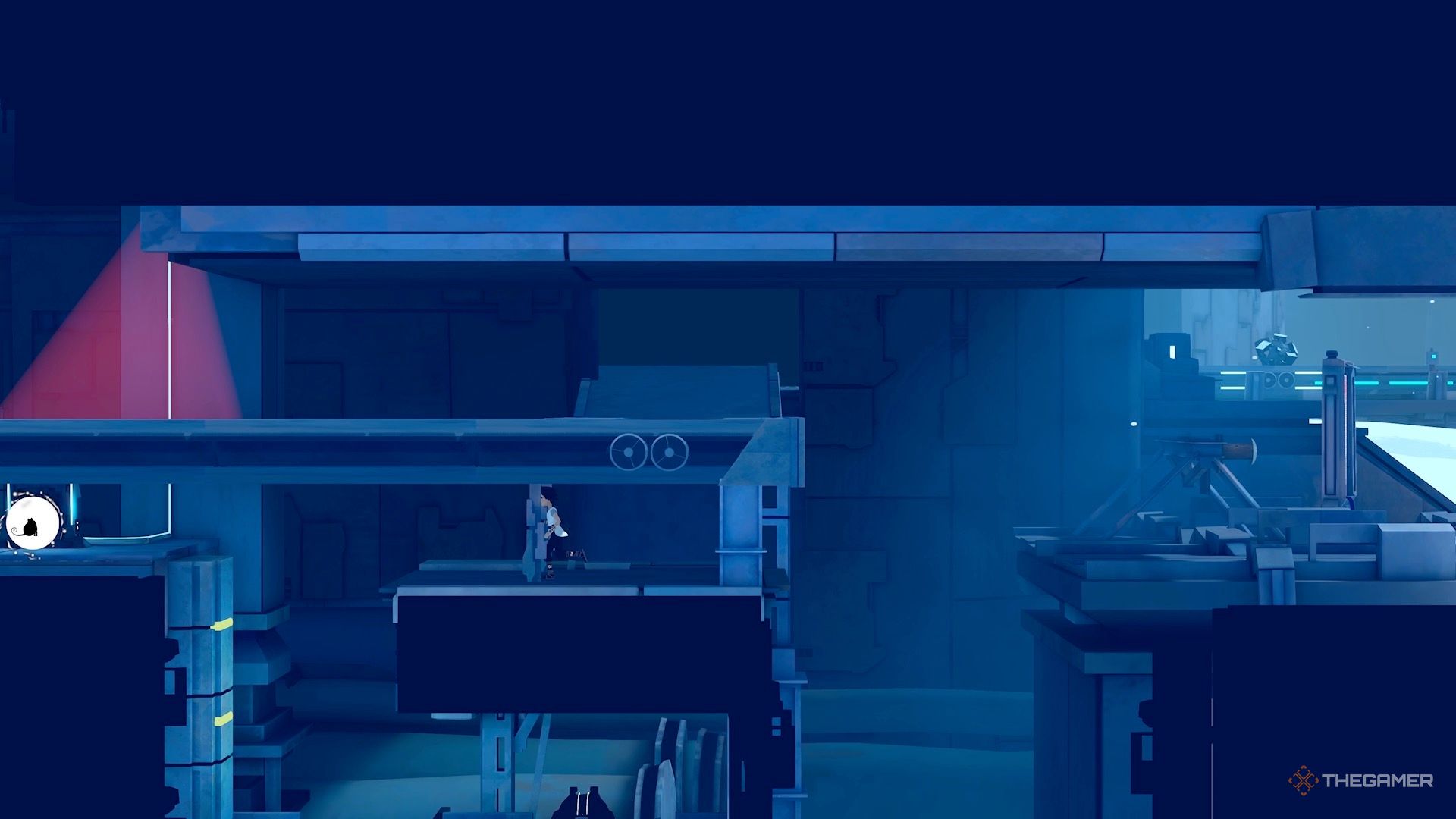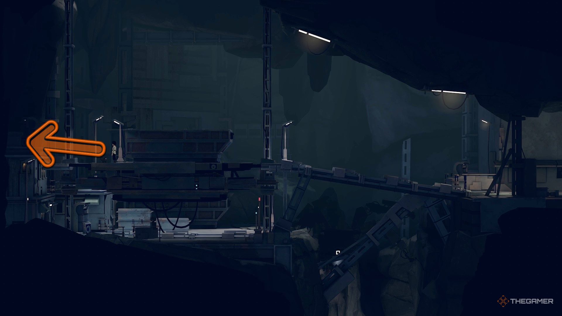 Ближе к концу уровня вы столкнетесь с большими машинами, которые вас раздавят, если будете не осторожны. После того, как вы пройдете мимо второй машины, направляйтесь направо, чтобы открыть скрытую область. Внутри вы найдете сундук, содержащий Голограмму.