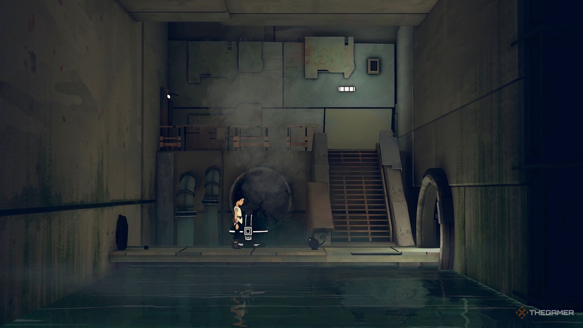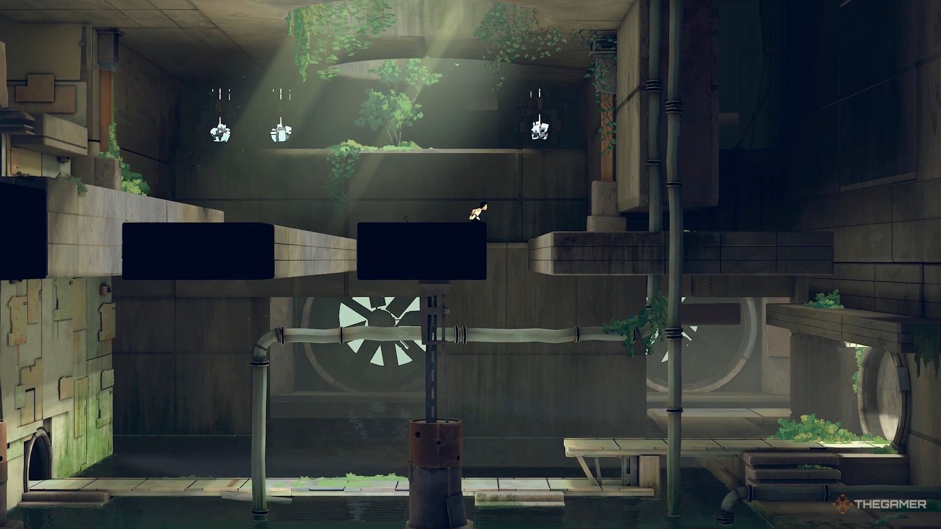 После быстрого восхождения по крышам в Седьмой главе вы вернётесь под землю. Вам нужно будет прыгать по нескольким большим блокам, а затем спрыгнуть вниз. Вместо того, чтобы проходить через большое отверстие справа, поищите меньшее отверстие слева – там вы найдёте спрятанный сундук.