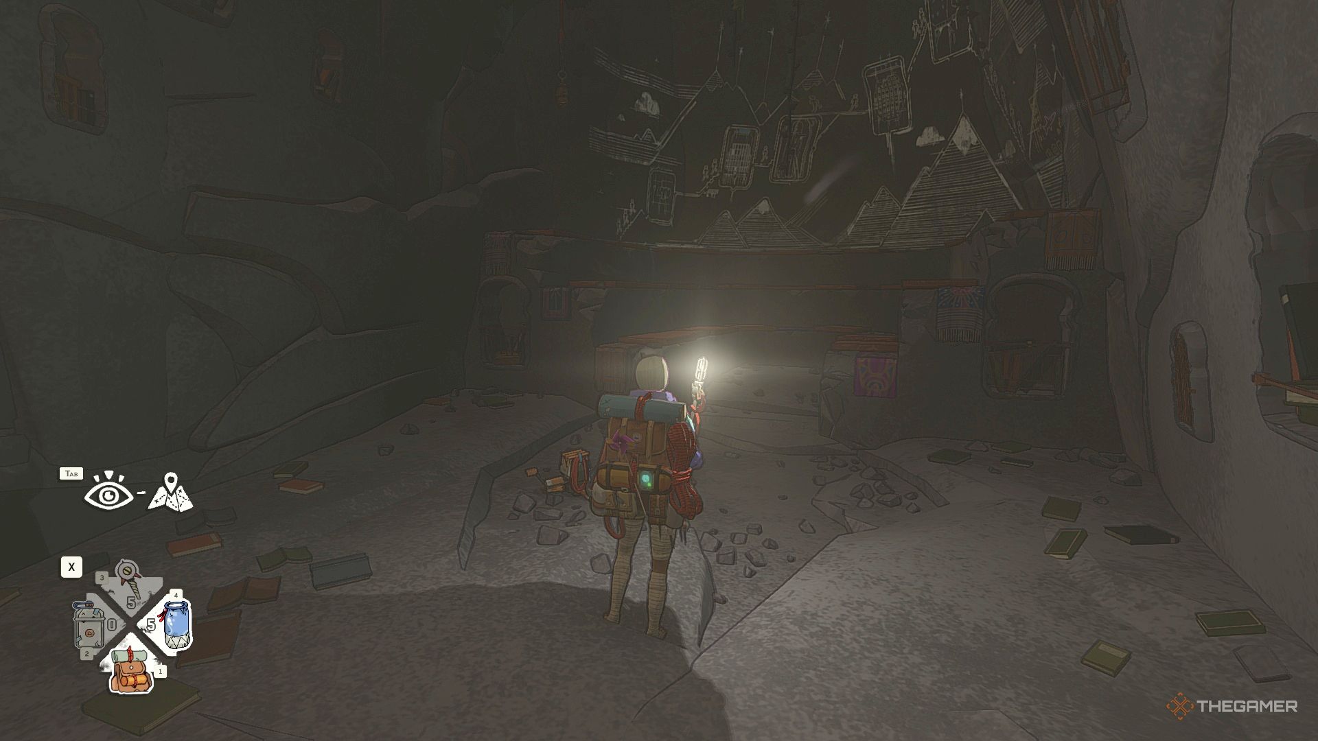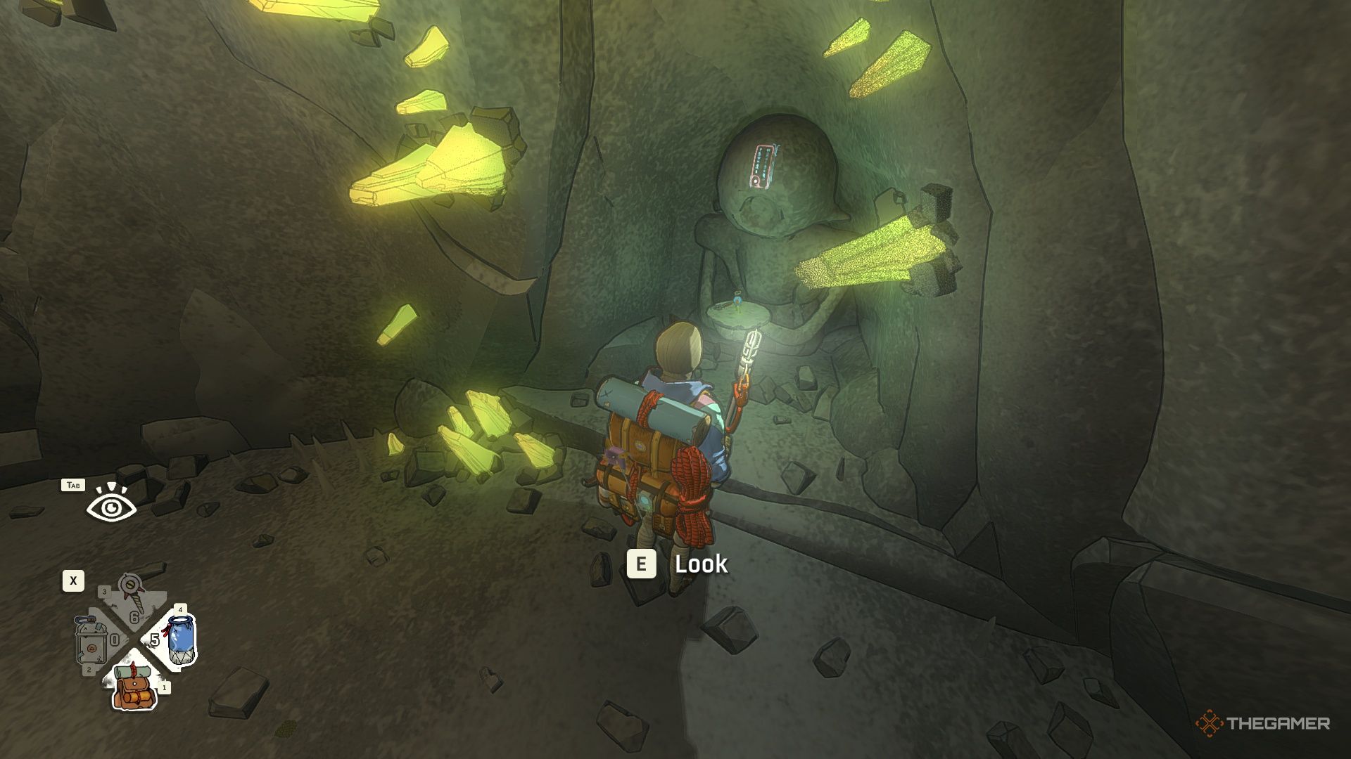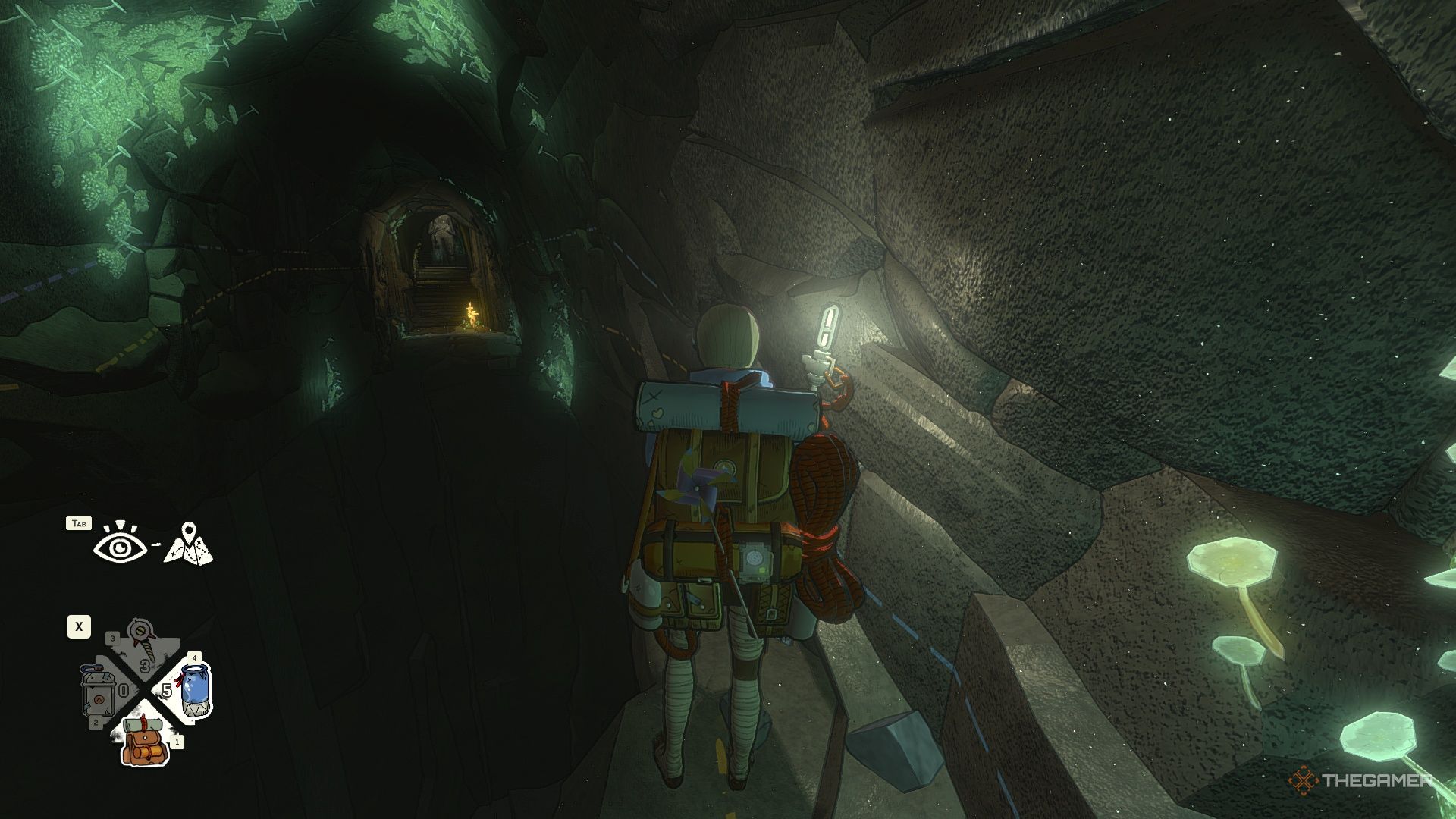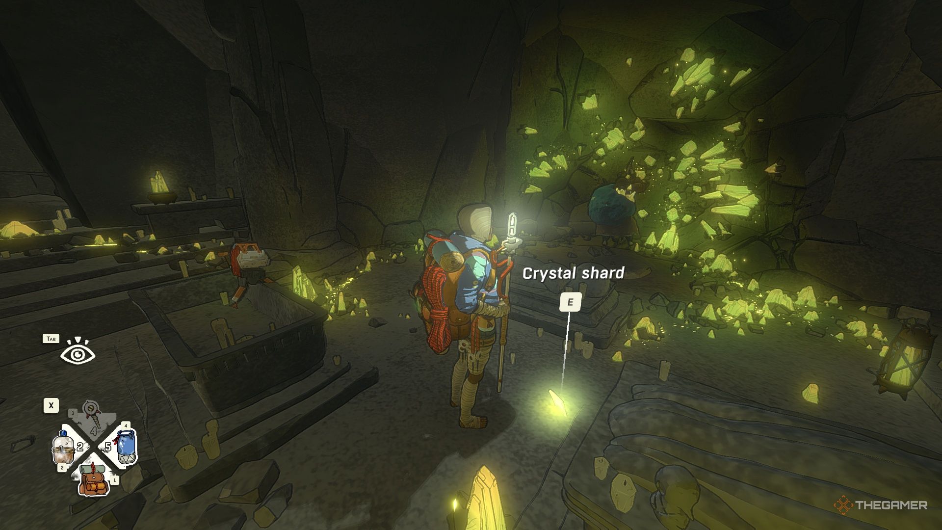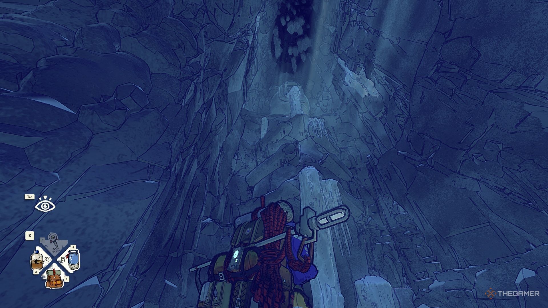 Перчатки находятся наверху. Чтобы до них добраться, вам нужно будет пролезть через отверстие в потолке. Самый простой путь наверх — найти тропу с наименьшим количеством кристаллов, преграждающих вам путь.