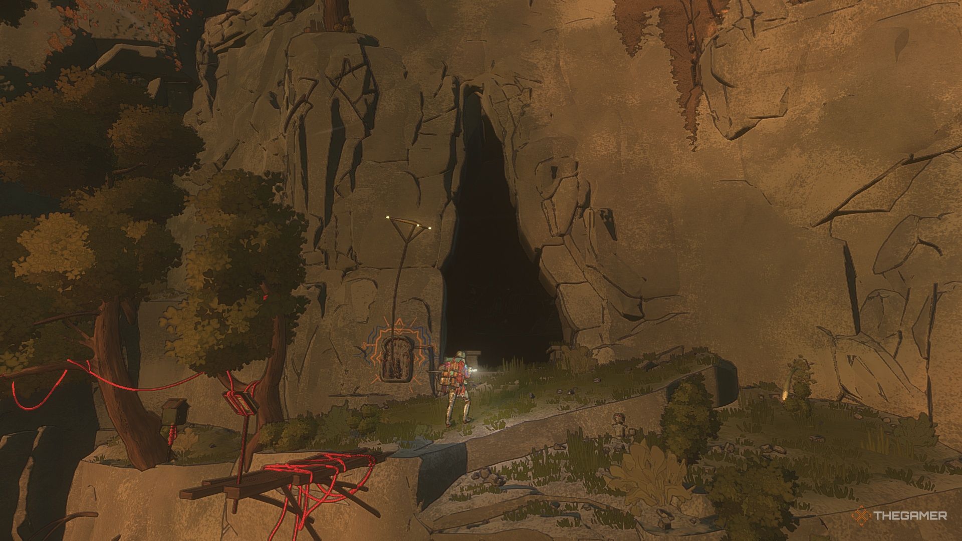 Зайдите внутрь этой пещеры, пока не достигнете открытой области.